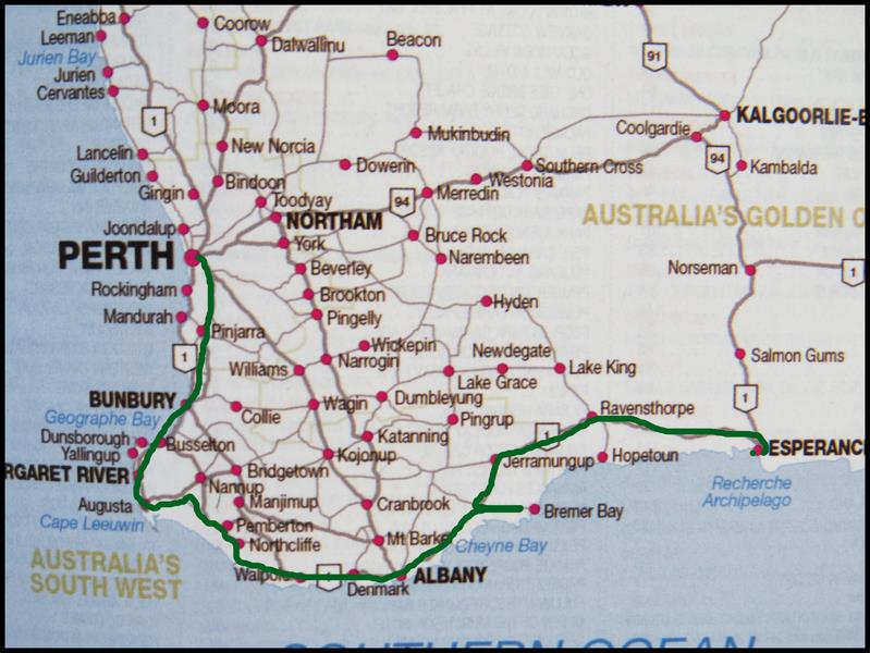 Nous sommes le 24 décembre et nous prenons enfin la route en direction du sud. Notre itinéraire ira de Perth à Esperance