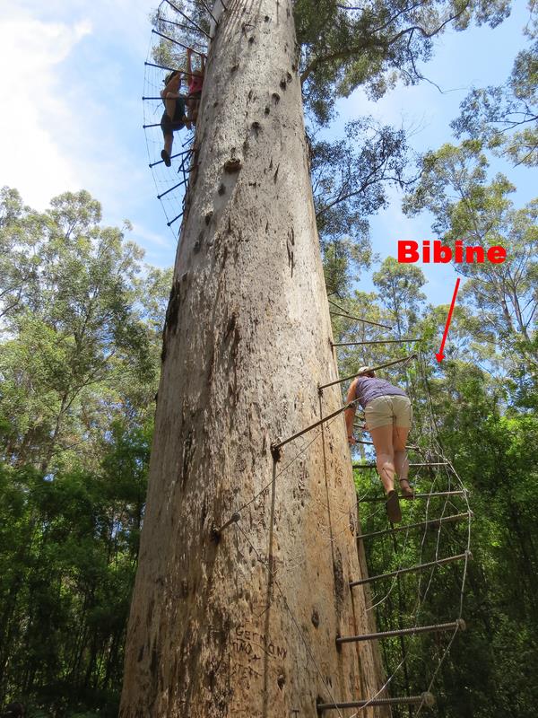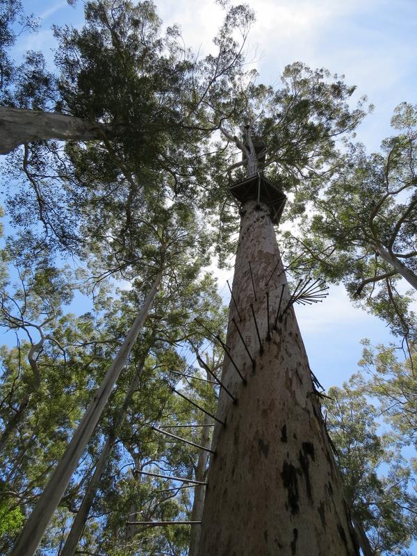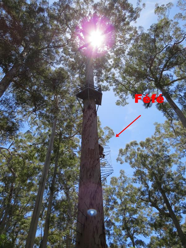 Grimpette au sommet du Gloucester Tree, sur une plateforme située à 65m du sol