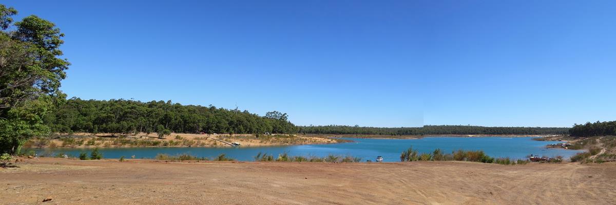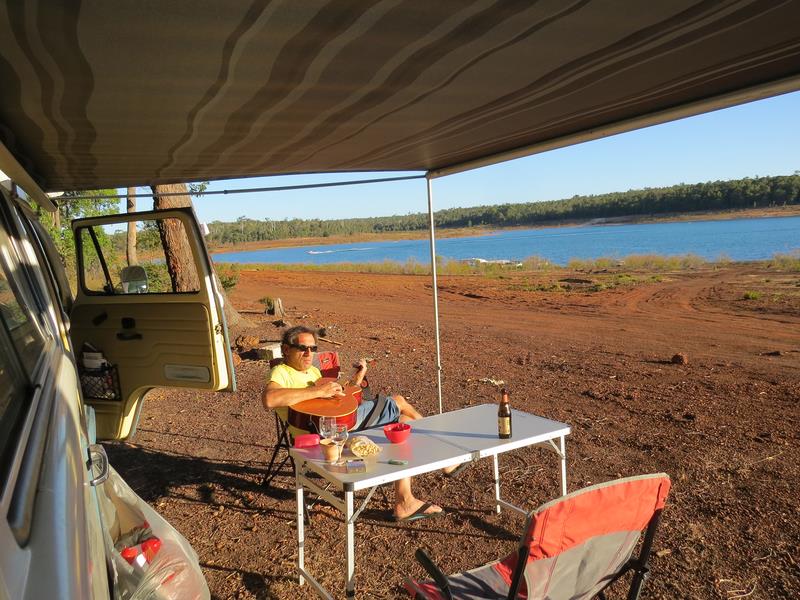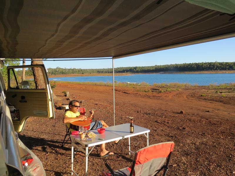 Nous nous arrêtons pour bivouaquer au bord d'un lac artificiel