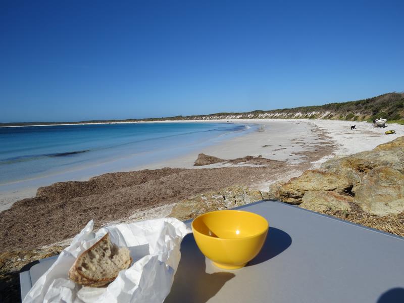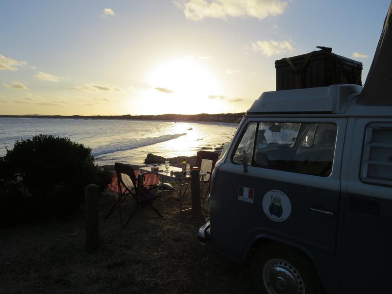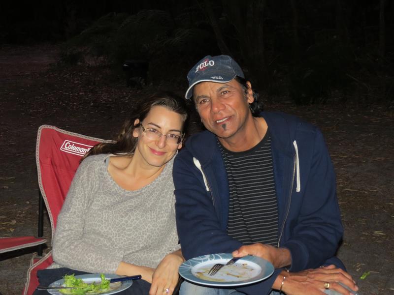 31 décembre 2014 Nous nous faisons un bon petit dîner avec Sabine et Mathieu, rencontrés au pied de l'arbre auquel nous avons grimpé, et qui se sont installés dans le même camp que nous. Ils ont du foie gras et du mousseux de Tasmanie, Sabine fait du pain et FF nous fait un BBQ, le bonheur .... Après cet excellent dîner nous retrouvons Céline et Geoff qui sont aussi à Northcliffe avec des amis. Nous avons passés une excellente soirée de Nouvel An