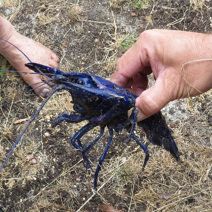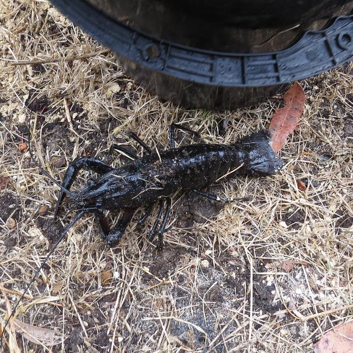 Le propriétaire du camp dans lequel nous sommes, nous fait découvrir ces curieuses bêtes, se sont des écrevisses australiennes appelées "marrons". Il les pêche dans son barrage |