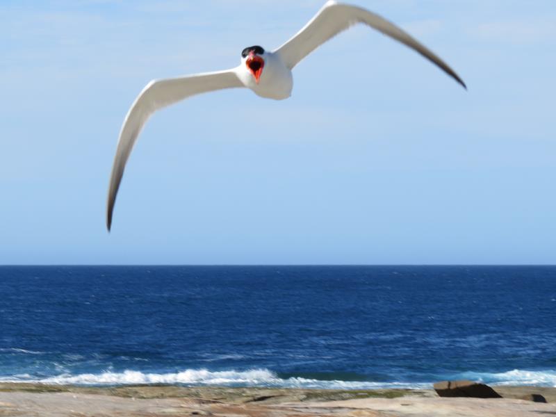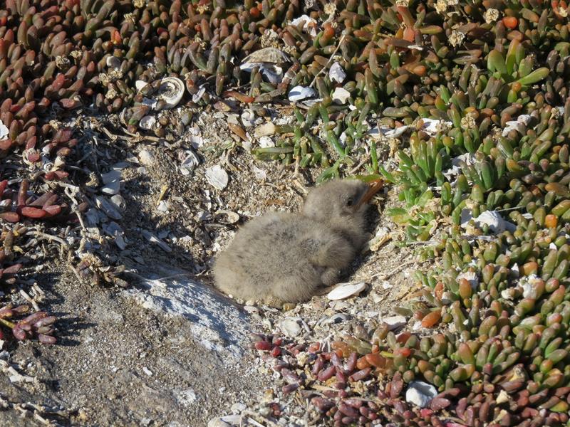 En nous promenant sur les rochers le long de la plage, nous découvrons un nid et nous nous faisons attaquer par ses parents très agressifs, pas le choix nous devons rebrousser, non sans avoir pris une photo de leur progéniture !!!!!
