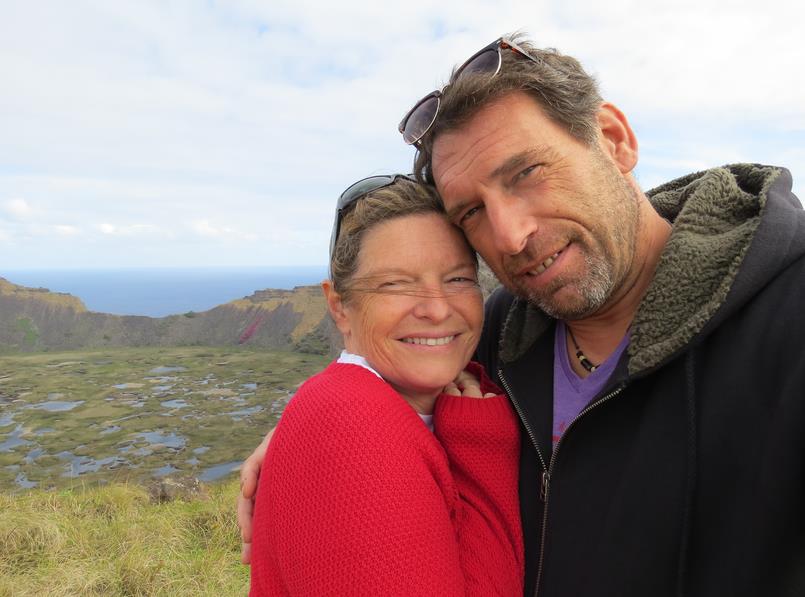 5800 habitants : des chiliens du continent, des polynésiens, quelques étrangers dont des français. Long d'à peine 23 kms sur 12 kms de large, ce petit bout de terre perdu présentant la forme quasi parfaite d'un triangle isocèle est né des profondeurs de l'océan au beau milieu du Pacifique. C'est aussi l'île la plus éloignée de toute terre habitée. Elle est située à 3760 kms du Chili et à 4100 kms de Tahiti. Nous arrivons à l'île de Pâques par un vol Lan qui y fait escale avant de continuer sa route jusqu'à Tahiti. Nous envions ces quelques passagers...... mais c'était sans savoir ce que nous allions découvrir ici.