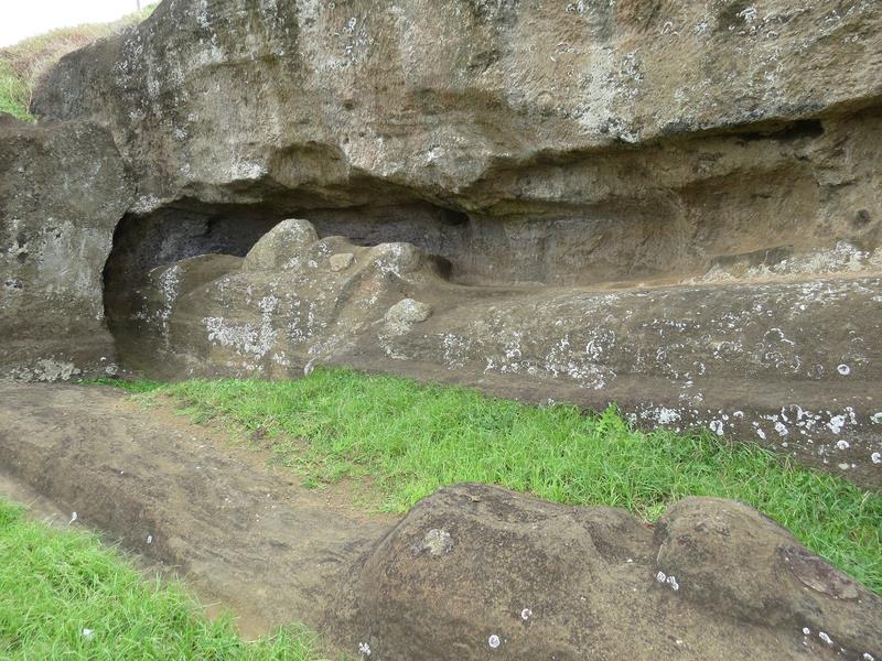Moai en cours de taille à même la roche volcanique