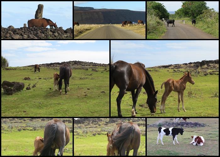 A part les statues, les cailloux, les grottes et les volcans, il y a aussi les chevaux et les vaches... en totale liberté... PARTOUT !!!!!!