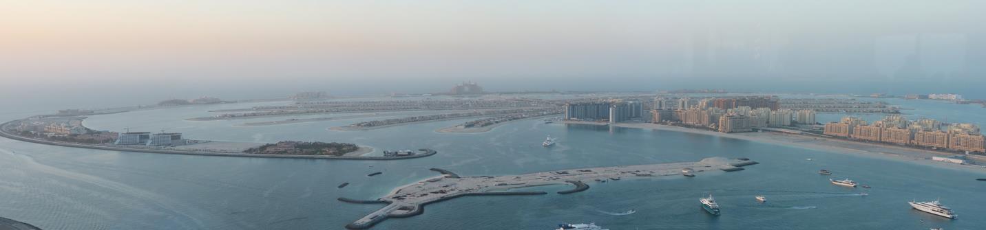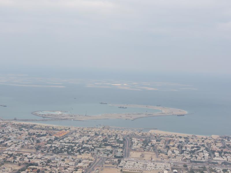 | | Au loin, la nouvelle folie dubaïote : un groupe d'îles artificielles représentant la Terre |
