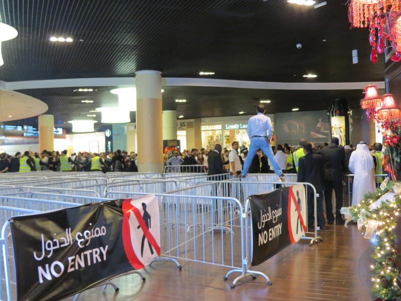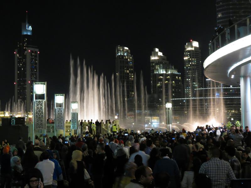 La circulation est infernale, aucun taxi ne veut nous amener à Burj Khalifa, alors nous prenons le métro. La station est fermée car il y a trop de monde, nous descendons à la suivante. Nous finissons par arrivée au Dubaï Mall. C'est une marée humaine.