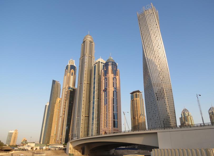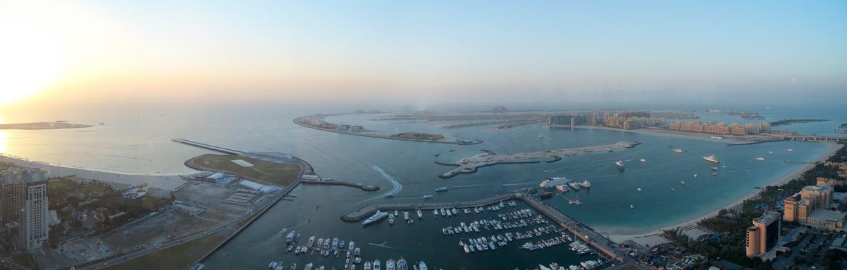 Il y a quelques années encore, le bord de mer de Dubaï était un vaste espace quasiment désert, mais les immeubles et les gratte-ciel y ont poussé en un clin d'oeil, faisant de ce Dubaï moderne l'extrême opposé de la vieille ville. La croissance de cette partie de la ville s'est faite tellement rapidement que bon nombre de bâtiments n'ont pas encore trouvé preneur. Il est donc très courant en se baladant de voir de nombreux panneaux "for rent" ou "for sale". Cette ville, qui connaît d'ailleurs la croissance la plus rapide de la planète, voit ce quartier encore très occupé par les grues. L'expansion paraît éternelle à Dubaï. C'est dans cette partie de la ville qu'il y a la très célèbre île artificielle en forme de palmier, The Palm Jumeirah, et le fameux hôtel Atlantis qui domine l'île.