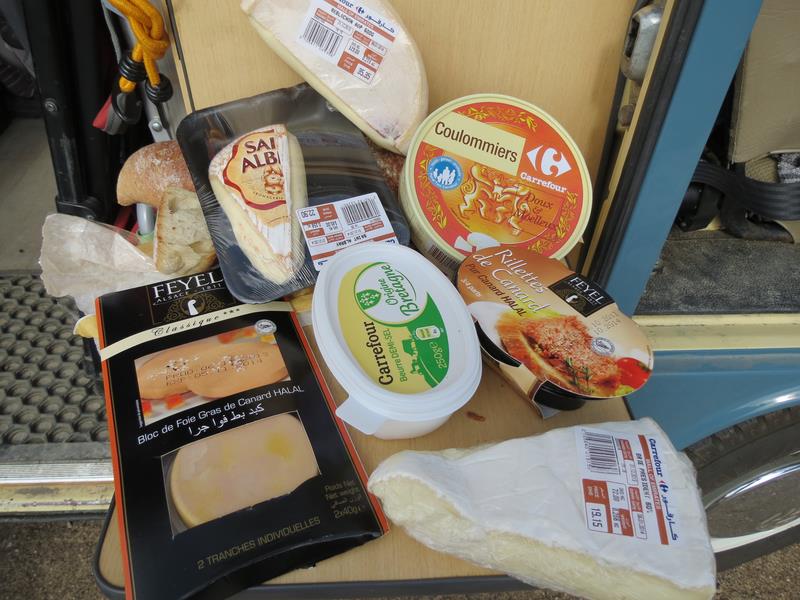 | Courses à Carrefour avant de partir. Notre premier pique nique depuis bien longtemps .... (miam miam, enfin du fromage) |