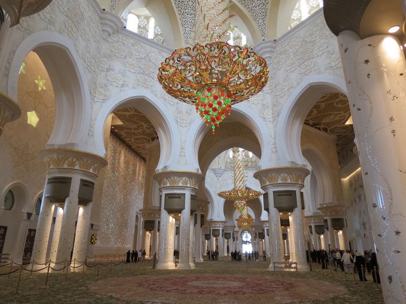 Elle est l'une des plus grandes mosquées au monde, permettant d'accueillir 40000 fidèles. Elle comprend 80 dômes, environ 1000 colonnes, des lustres en plaqué or 24 carats, et le plus grand tapis tissé à la main au monde. La salle de prière principale est dominée par l'un des plus larges lustres au monde - 10 mètres de diamètre, 15 mètres de haut et pesant plus de 9 tonnes. La première cérémonie qui y ait eu lieu fut l'enterrement de Sheikh Zayed, qui est enterré sur le site et qui a donné son nom à la mosquée.
