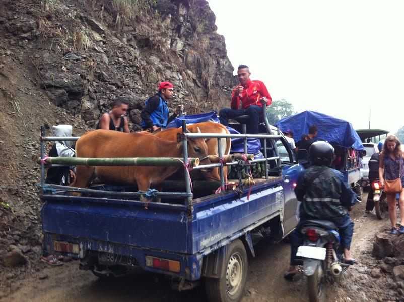 Nous avons décidé de traverser l'île d'ouest en est et de rejoindre Maumère, mais en prenant une voiture avec chauffeur. C'est une pratique assez fréquente ici, et très sage au vu des conditions de circulation qui sont épuisantes et très dangereuses. La traversée de Flores est une aventure passionnante tant le dépaysement est total. Nous recommandons cette destination pour tous les voyageurs en quête d'authenticité, par contre nous la déconseillons à tous ceux qui recherchent le grand confort