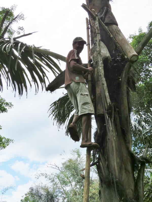 | |  | Récupération de la sève du palmier au moyen de bambous, pour fabriquer l'Arak (gnôle locale) |