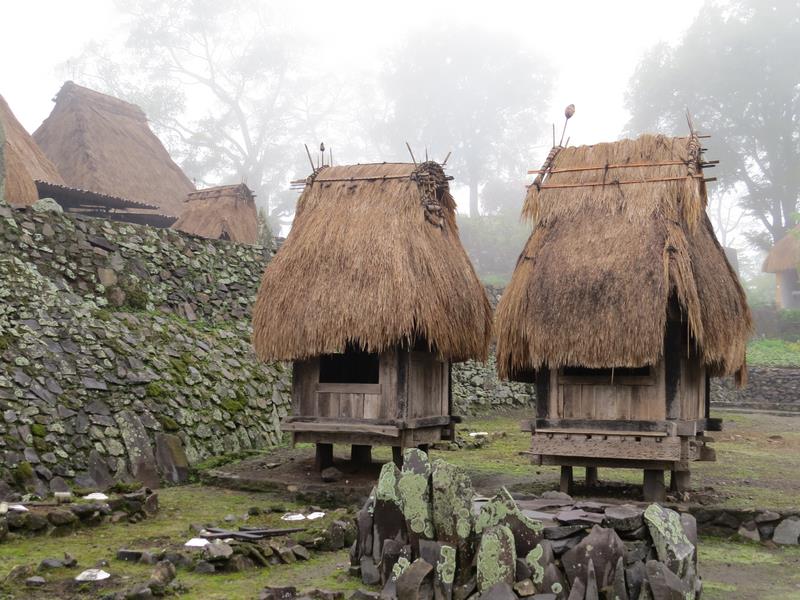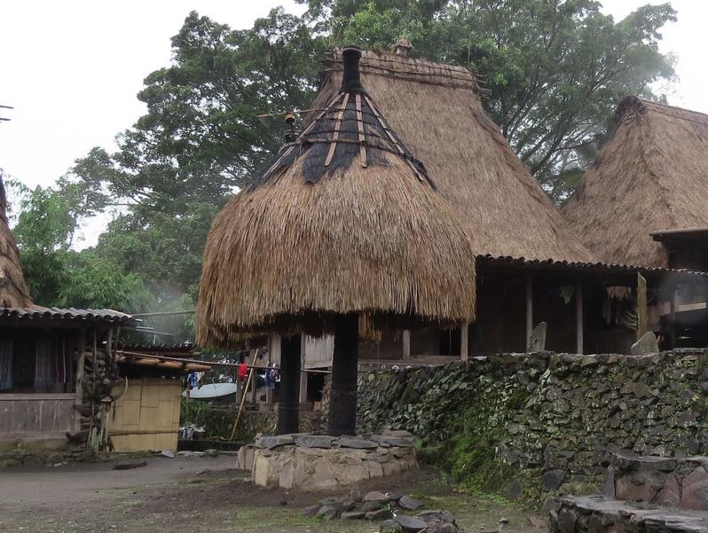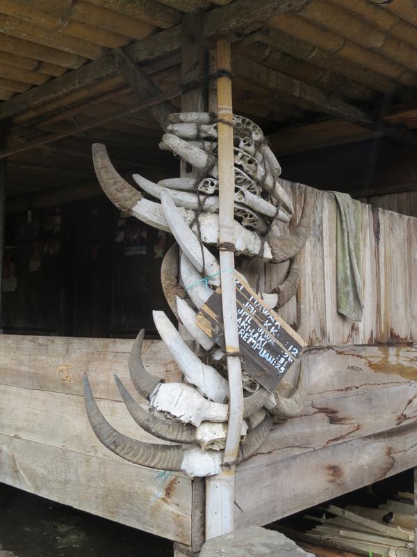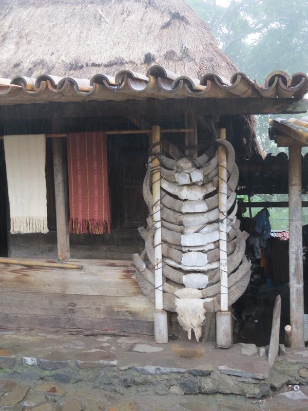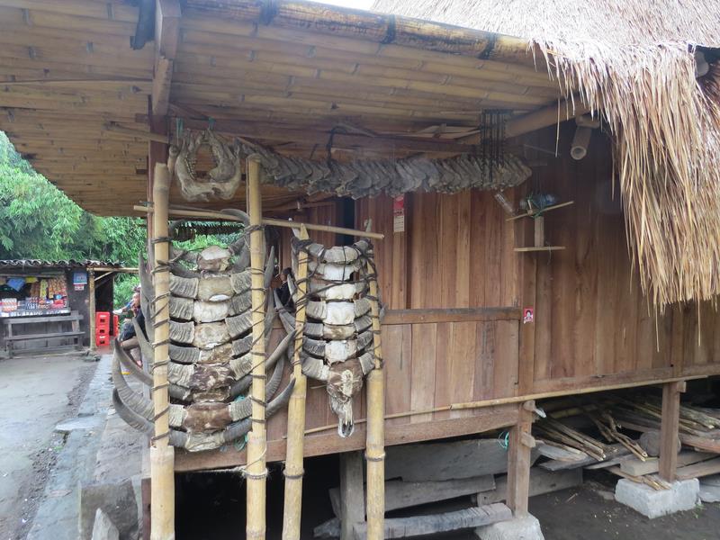 BENA - village traditionnel Ngada Les crânes, les cornes de buffles et les mâchoires de porcs accrochés aux murs des maisons sont les souvenirs d'animaux sacrifiés lors des cérémonies…