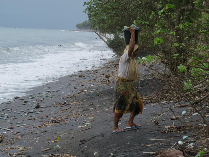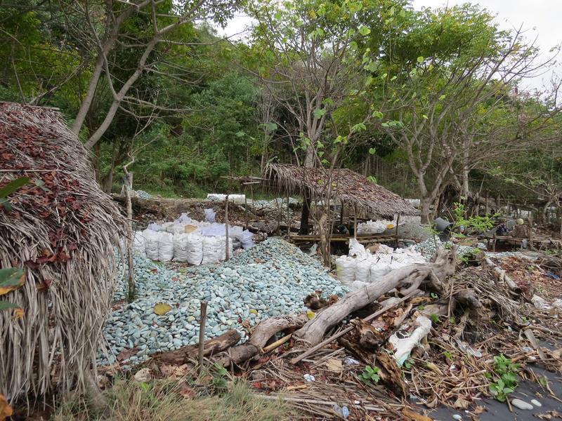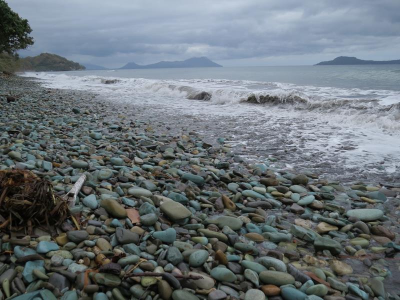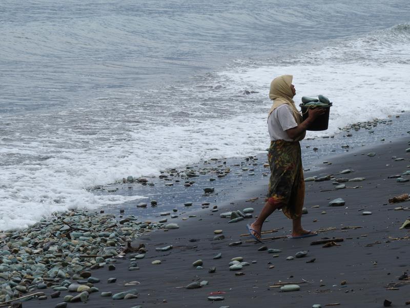La plage de Penggajawa avec ses étonnants galets bleus et turquoises qui sont notamment exportés à Bali