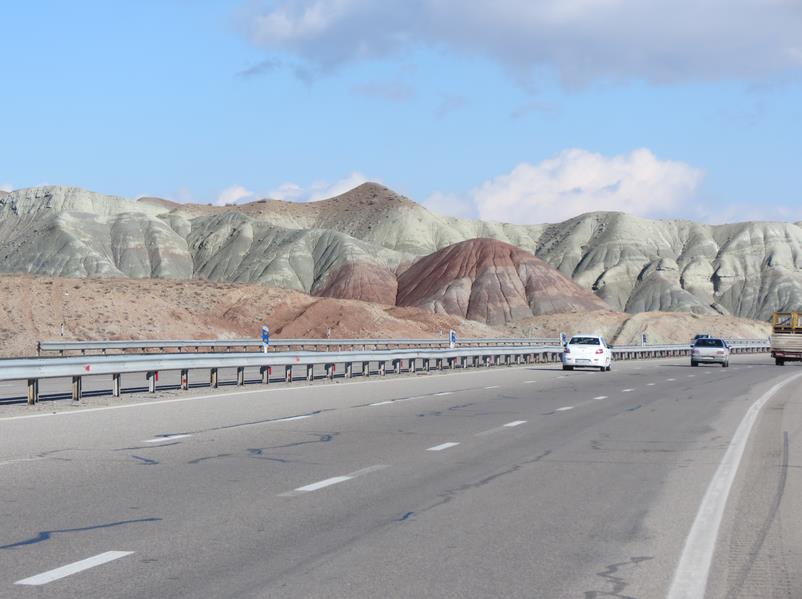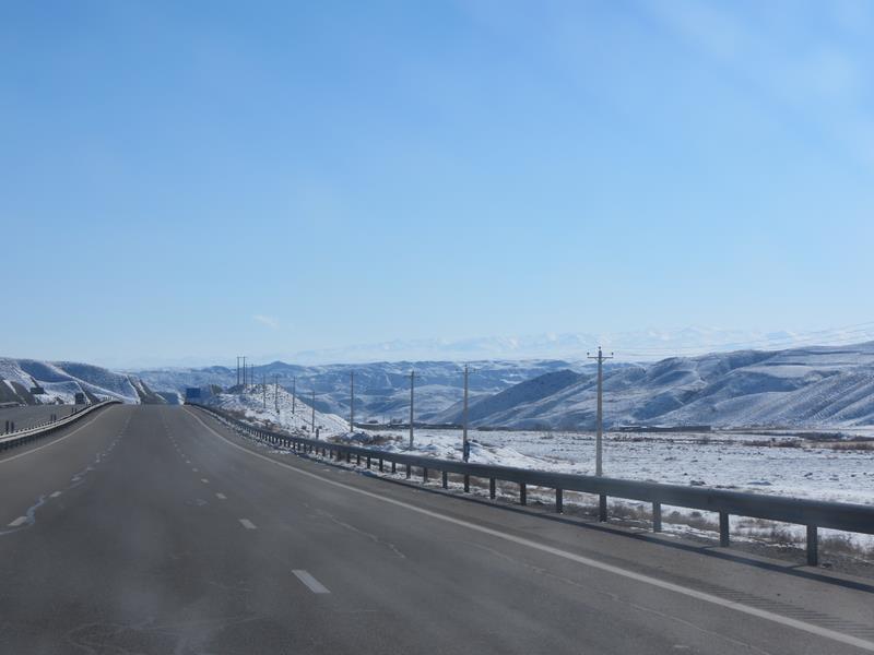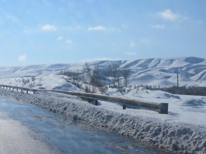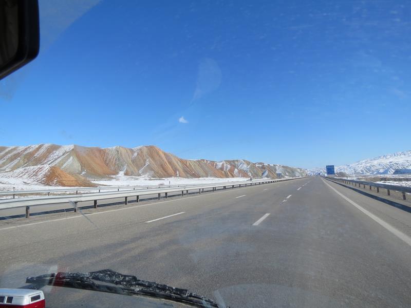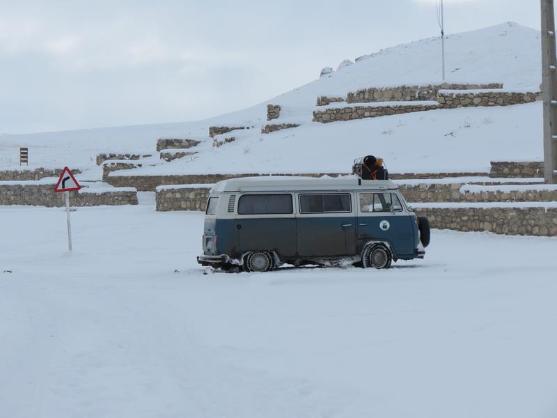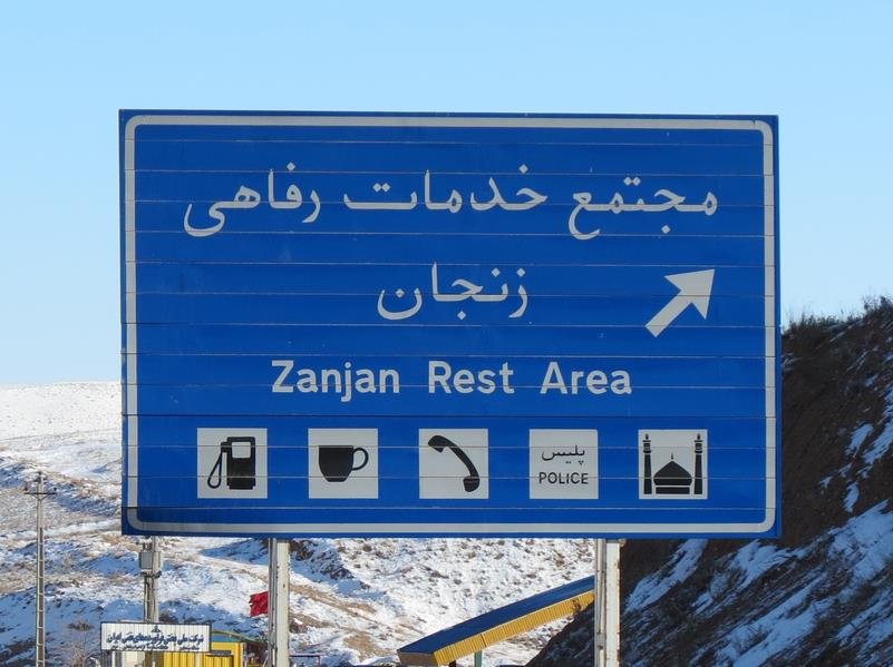 Nous regrettons de pas pouvoir faire du tourisme à Tabriz alors qu'il y a plein de choses à voir, mais la météo est toujours exécrable, avec une tempête de neige en prime. Nous décidons de continuer la route vers l'est en direction de Qazvin Nous prenons l'autoroute et nous espérons que la route sera bien dégagée. Nous n'avons payé aucun péage car à chaque fois le contrôleur nous disait "Where do you come from ? Welcome in Iran. Go, go". Nous nous faisons souvent arrêter par la police, mais on y a pris goût car c'est juste par curiosité qu'ils nous interpellent, et pour nous souhaiter la bienvenue en Iran