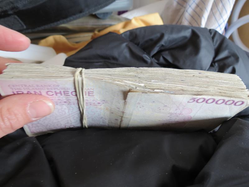 | En Iran il est impossible de retirer des espèces à un distributeur et nous n'avions pas pu retirer suffisamment d'Euros en Grèce, donc nous avons fait des retraits en Turquie, mais en lires turques. Suivant les conseils d'autres voyageurs, nous avons donc changé nos lires turques à la frontière, car il semblerait que dans le reste du pays ce soit plus difficile ou moins intéressant. Sabine va donc au guichet de la banque du poste frontière iranien, et là une meute de gars accourt sur elle; ils parlent tous en même temps, en anglais, en farsi, avec les mains.... Elle finit par comprendre que la banque ne change pas les lires turques (seulement les euros ou les dollars). Donc le change se fera au marché noir, dans la banque, devant leurs guichets et dans une cohue indescriptible, où chacun fait une offre de taux de change plus attrayante que le concurrent !!!! Nous récupérons plus de 40 millions de rials iraniens !!! Ca y est nous sommes multi-millionnaire. Z'avez vu l'épaisseur de la liasse de billets ???!!! Mais notre enthousiasme n'est qu'illusoire, car en réalité cela ne représente qu'un petit millier d'euros...c'est pas grave, nous sommes quand même multi-millionnaire ... yes !!!... mais en Iran !! |