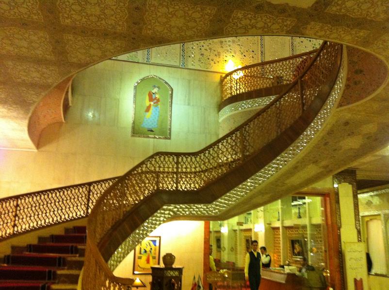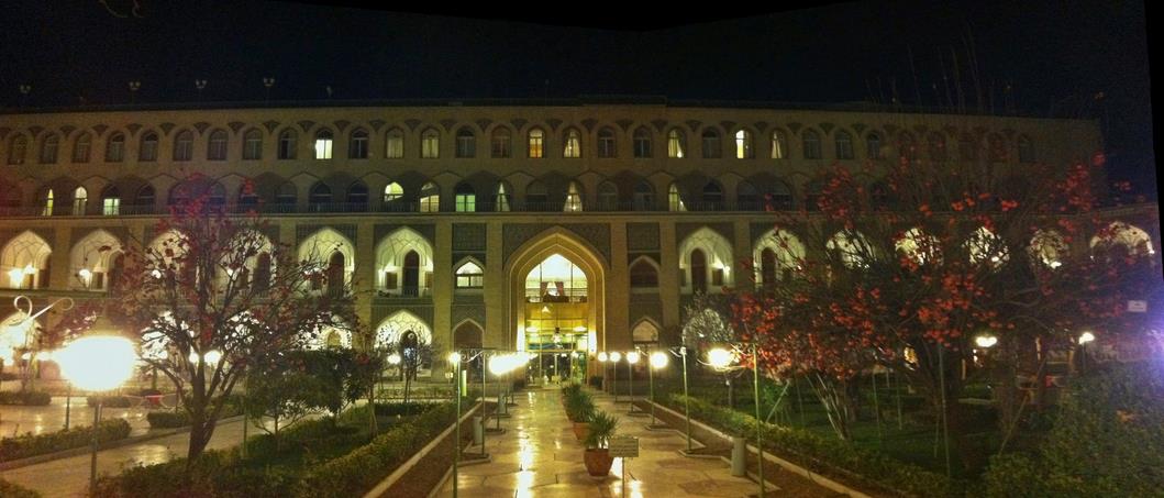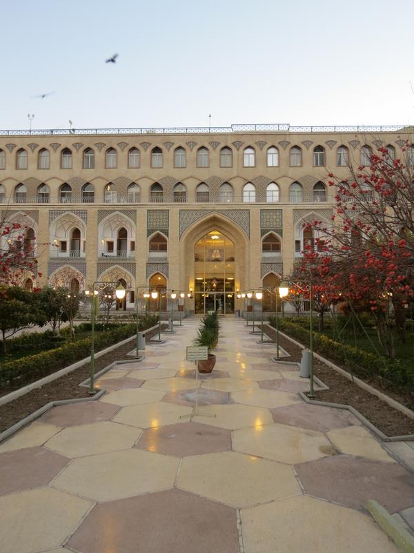 Nous arrivons le soir à l'heure des embouteillages, c'est totalement stressant compte tenu de la façon de conduire des iraniens qui sont de véritables dangers au volant, ne respectant ni les feux, ni les stops, ni les priorités, ni les piétons, ni quoi que ce soit d'autre. Par ailleurs nous sommes assez désemparés face à la conception des routes et des axes de circulation. Parfois, pour reprendre une même rue mais dans l'autre sens, il faut faire un énorme détour, car leurs rues ont un terre-plein central, un peu comme sur une autoroute mais en plein centre ville. Mais cette fois-ci nous avons joué de prudence : nous avons réservé un studio au Hasht Behesht - 8 ost andaris st - Ispahan- www.hbahotel.com . Toutefois, malgré notre prudence, il nous faudra près d'une heure pour trouver l'adresse (demandée à plusieurs passants) et ensuite y arriver (en étant confrontés aux bouchons, aux fous du volant, aux sens interdits et à ces routes à double sens que l'on ne peut prendre que dans un sens - sic...) !!!