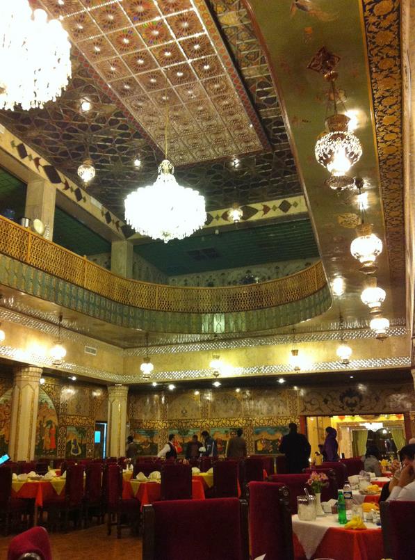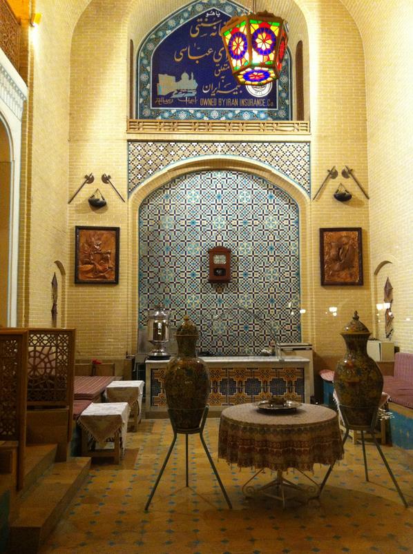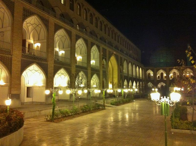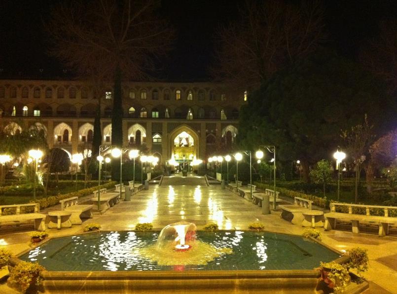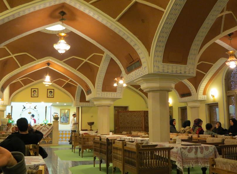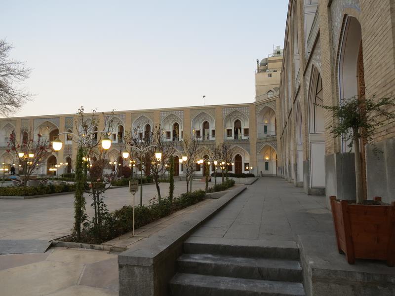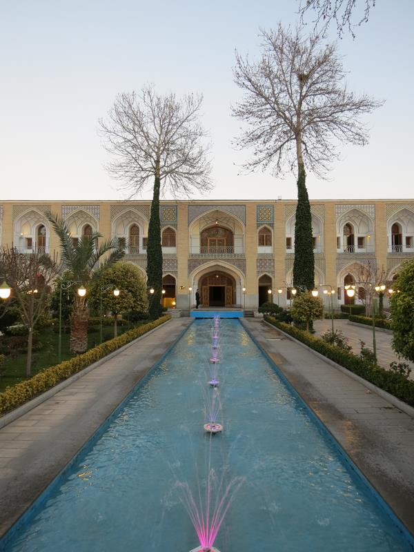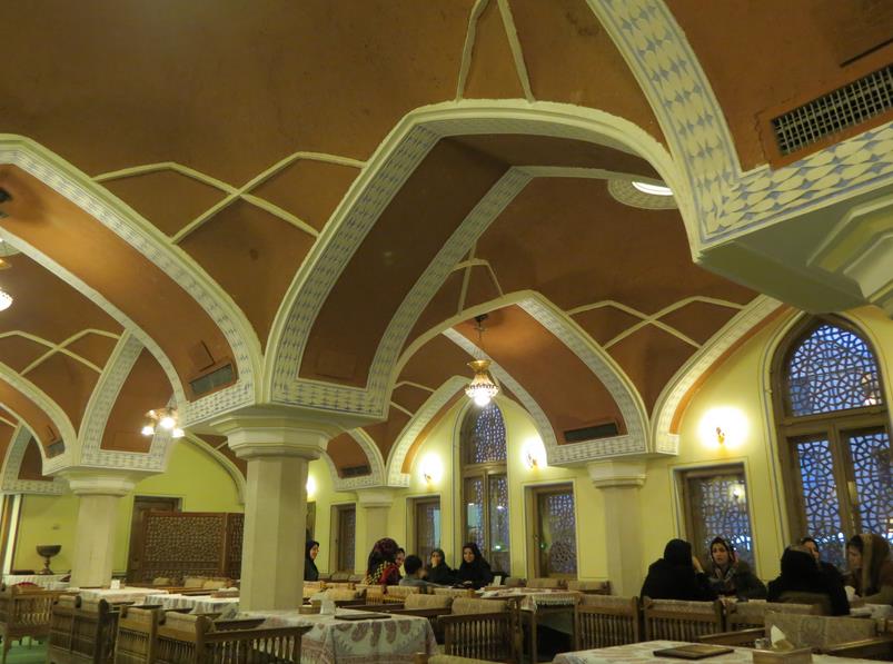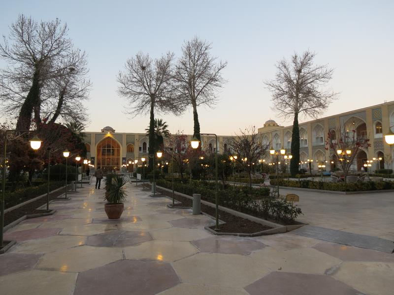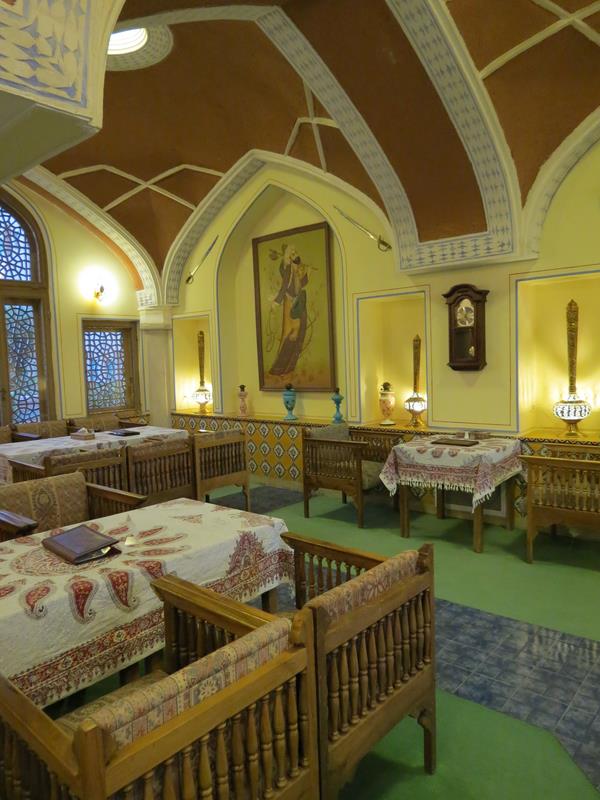 Nous allons dîner à l'ancien caravansérail transformé en hôtel (hôtel Abassi). Nous nous attendons à des prix exorbitants, mais en définitive, nous dînons pour à peine 10€.