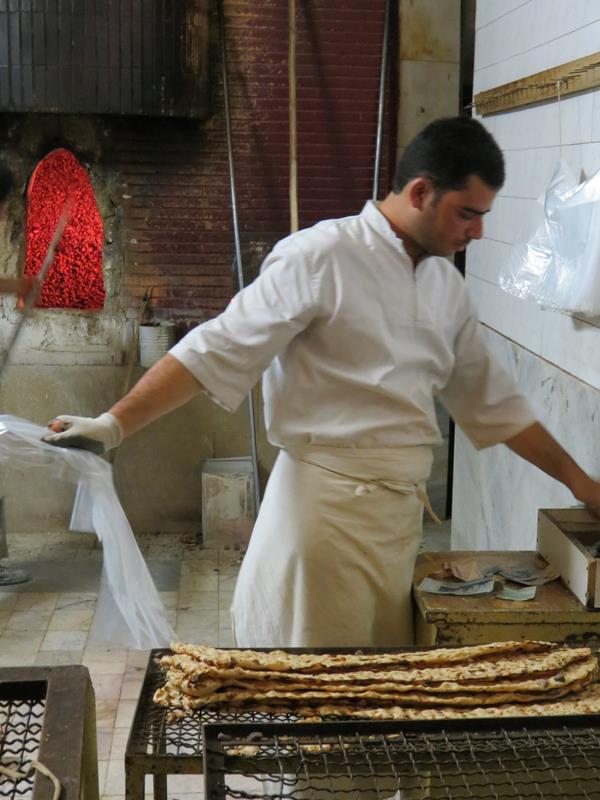 Fabrication du pain "nan". Les gens font la queue dans ces espèces de boulangerie où il n'y a qu'un four à bois. Le pain est cuit sur des cailloux, et est divin quand il est chaud.