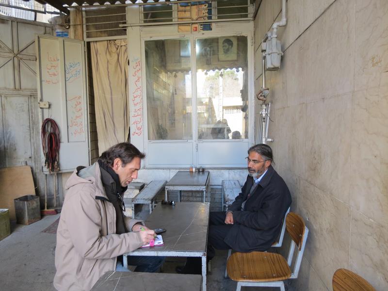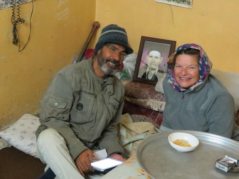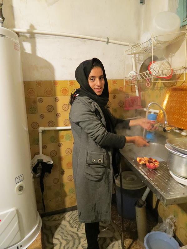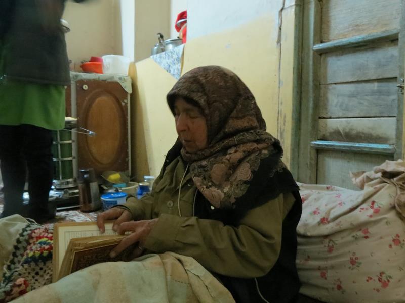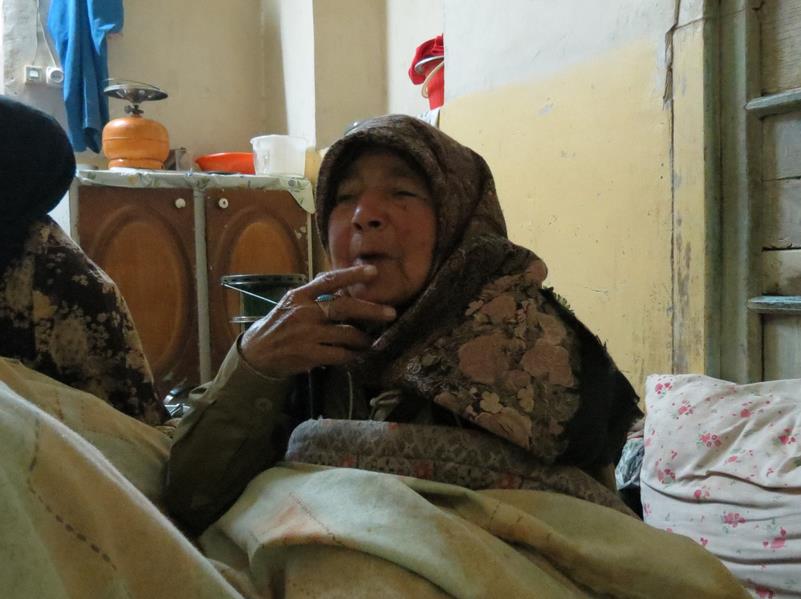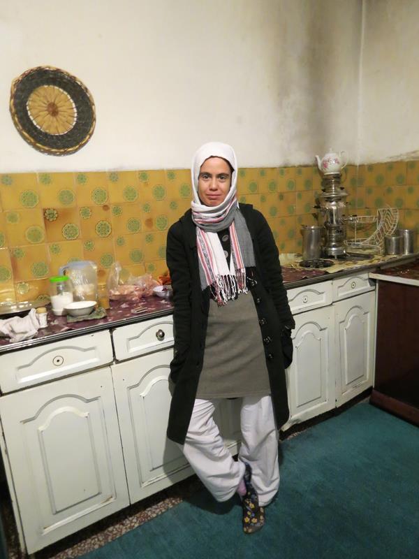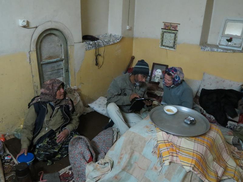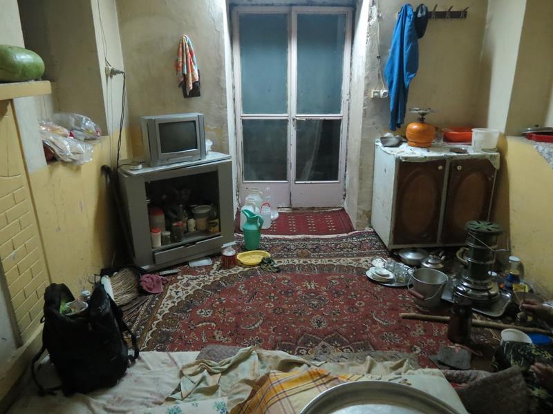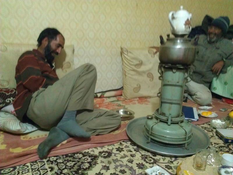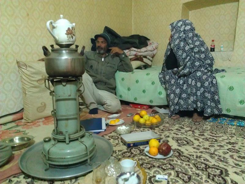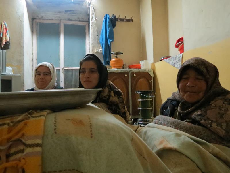 La tante de Mazdak s'appelle Fatima et a 85 ans. Elle vit dans une maison traditionnelle sans aucun confort, hormis une télé et un chauffage électrique qui se trouve au centre de la pièce sous une sorte de table basse, avec d'épaisses couvertures posées dessus. C'est là que nous passerons la nuit, tous ensemble, à même le sol, le corps sous les couvertures afin de se réchauffer.