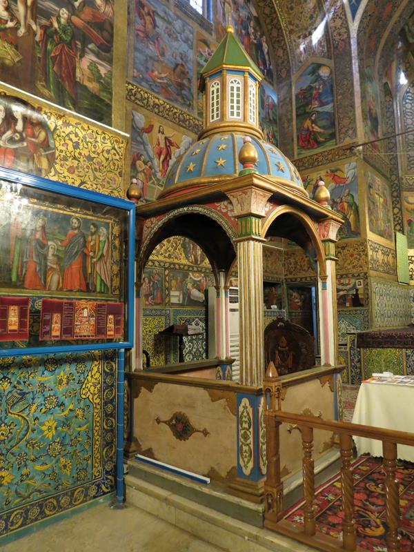 Sur la place Imam nous rencontrons un jeune qui parle parfaitement l'anglais avec qui nous sympathisons. Il nous dit connaître un gars qui parle le français et qui est guide. Nous lui donnons notre téléphone et on verra bien si on nous rappelle. Le soir même Mazdak nous appelle et nous propose ses services gratuitement. Une fois de plus nous sommes ébahis face à cette générosité. Le lendemain, il nous fait découvrir "son" Ispahan, et en particulier le quartier arménien où le culte catholique est encore toléré et pratiqué dans les quelques 16 églises arméniennes que l'on trouve dans la ville. Finalement nous passerons plusieurs jours avec Mazdak, car il nous propose de nous emmener chez sa tante, dans son village d'enfance, perdu dans les montagnes. Bien entendu nous acceptons.