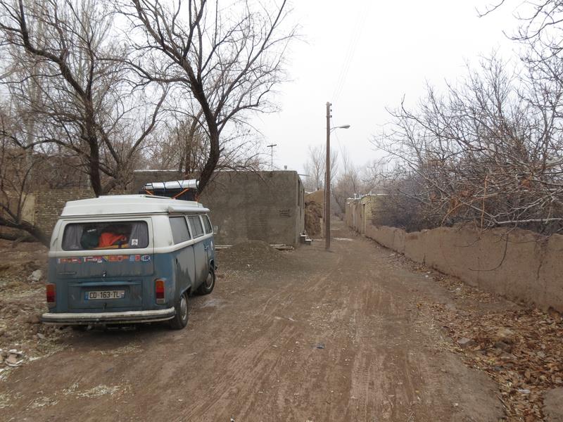 Nous allons enfin pouvoir faire un peu de tourisme. Il n'y a plus de neige et il fait beaucoup moins froid. Nous nous posons 3 nuits. Le gars de l'hôtel est très sympa, il a été voir notre site et nous pose pleins de questions. Il remarque que nous n'avons pas le drapeau de l'Iran sur notre véhicule, et dès le lendemain matin, il nous en ramène un !!! que nous nous empressons de coller à l'arrière de Caracolito.