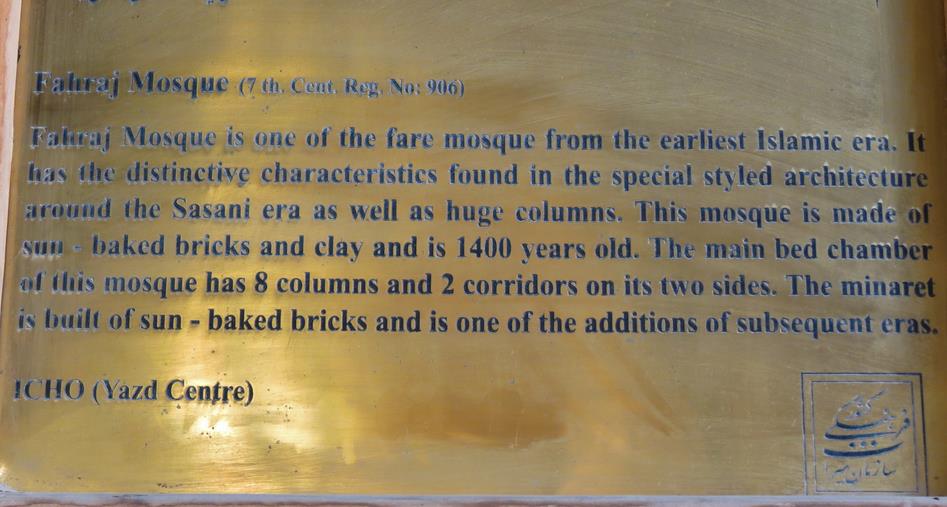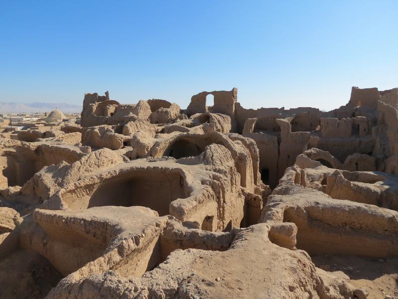 Le lendemain nous visitons la mosquée (la plus vieille d'iran : 1400 ans) et le château de Fahraj. Ces 2 édifices ont été entièrement construits en briques cuites au soleil uniquement, et recouvertes de torchis.