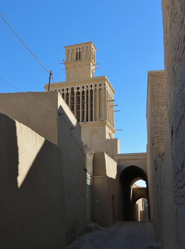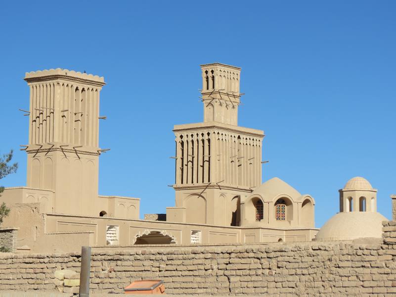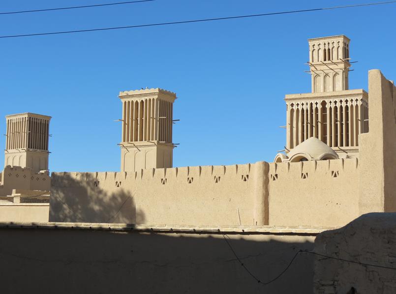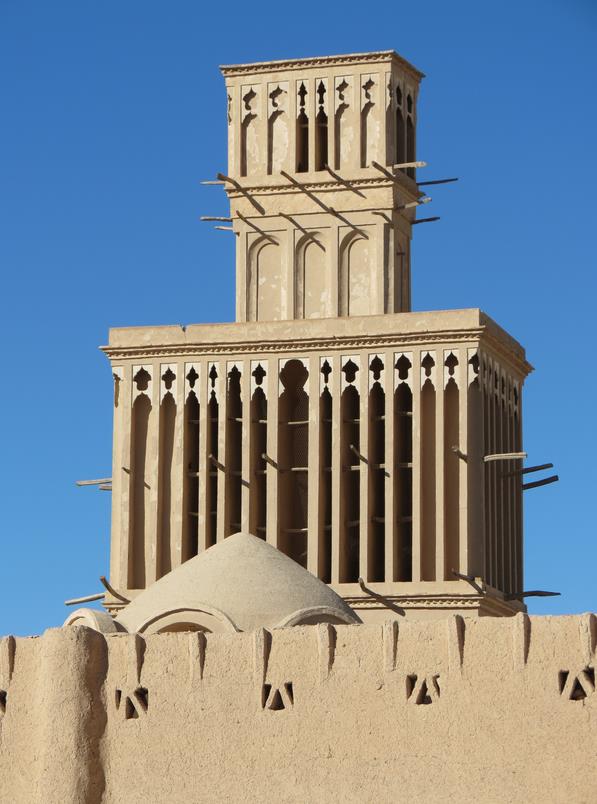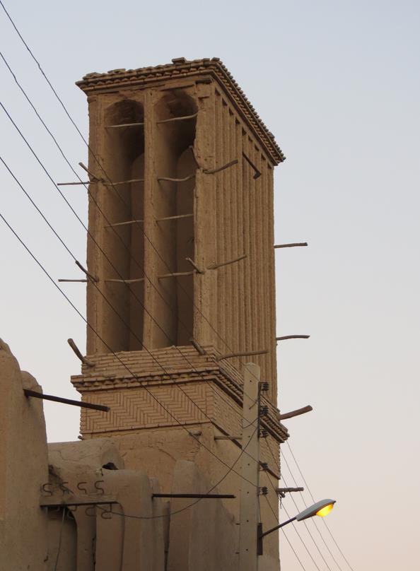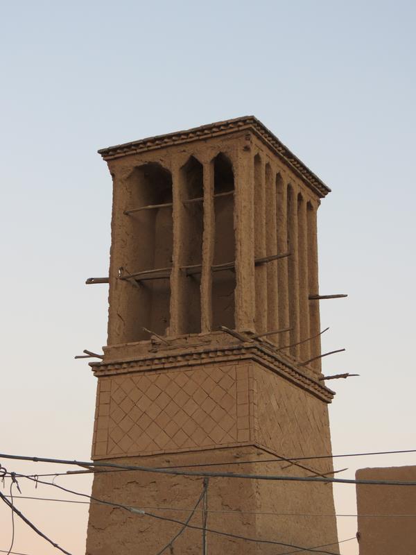 Arrêt à Abarkuh pour voir de grandes tours du vent. Se sont des "cheminées" qui servent à réguler la température dans les maisons, les rendant plus fraîches en été et moins froides en hiver. On cherchera également un cyprès vieux de 4000 ans, qu'on ne trouvera pas malgré quelques panneaux mentionnant la direction à prendre. Pressés d'arriver à Shiraz nous renonçons par manque de temps à trouver cet arbre millénaire.