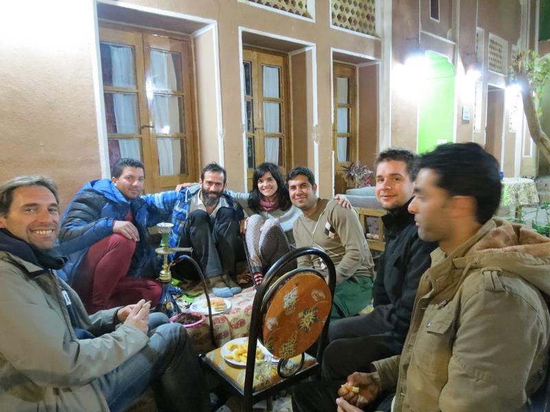 Arrivés à la guesthouse, nous faisons la connaissance de Adel et de ses amis, avec qui nous finirons la soirée à boire de la gnôle locale (avec modération) et à parler du manque de liberté en Iran (sans modération)