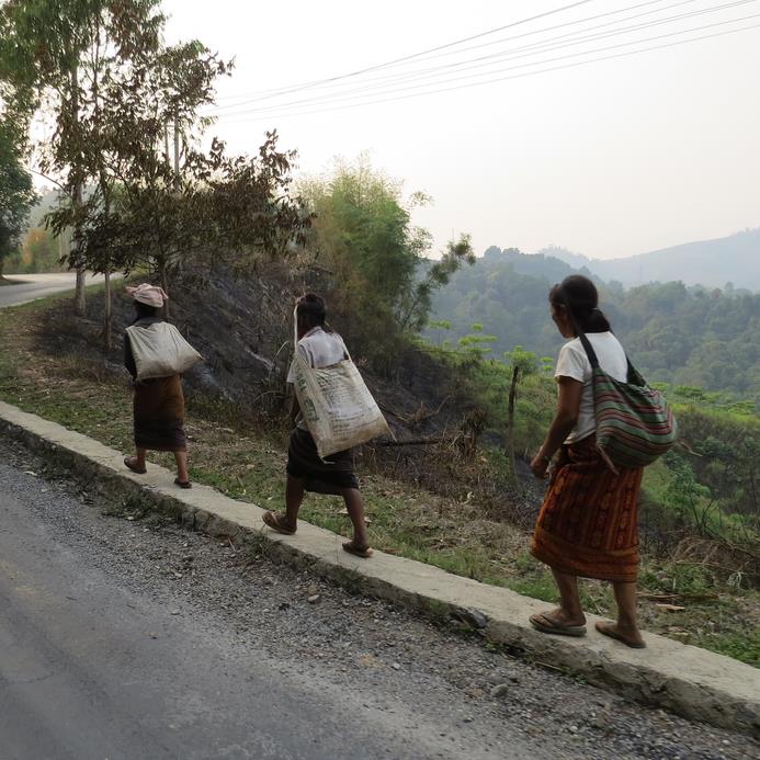 La route qui nous conduit à Luang Prabang est magnifique. Nous traversons plein de petits villages et nous montons jusqu'à 1500 m d'altitude, nous avons enfin un peu de fraîcheur. Nous sommes sidérés de voir ce que les femmes et les enfants portent sur leur dos