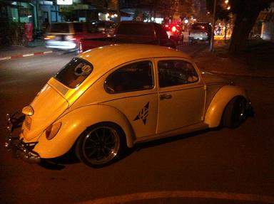 Nous arrivons tardivement dans la capitale du Laos, et en cherchant une guesthouse, nous passons devant un bar devant lequel sont stationnées des cox Volkswagen. Un gars nous interpelle. Fernando va le voir et nous apprenons que le proprio de la guesthouse dans laquelle nous avons dormi la veille appartient à son frère, il lui avait envoyé une photo de Caracolito. Et du coup quand nous sommes passés devant le bar il nous a reconnu !!! le monde est vraiment petit...