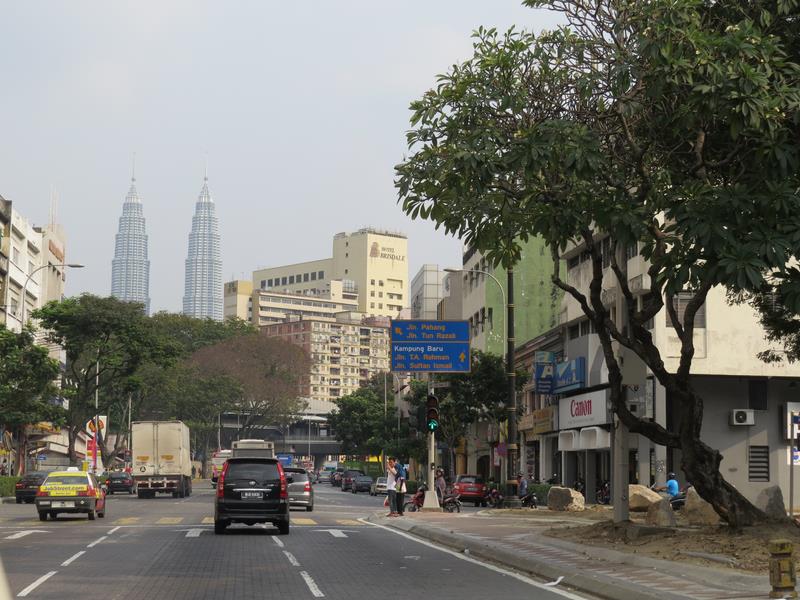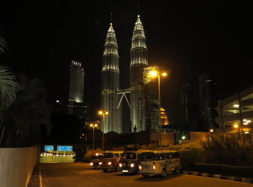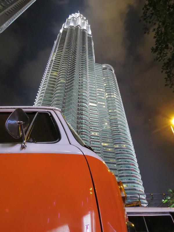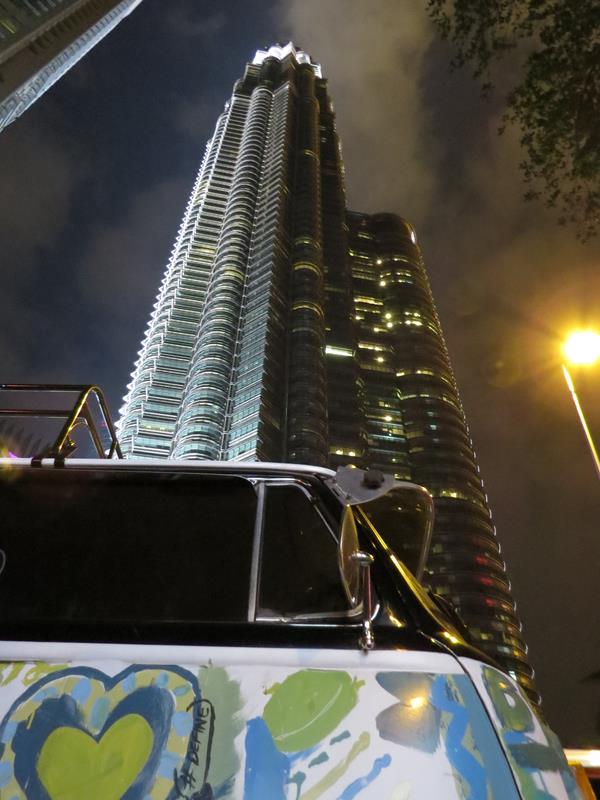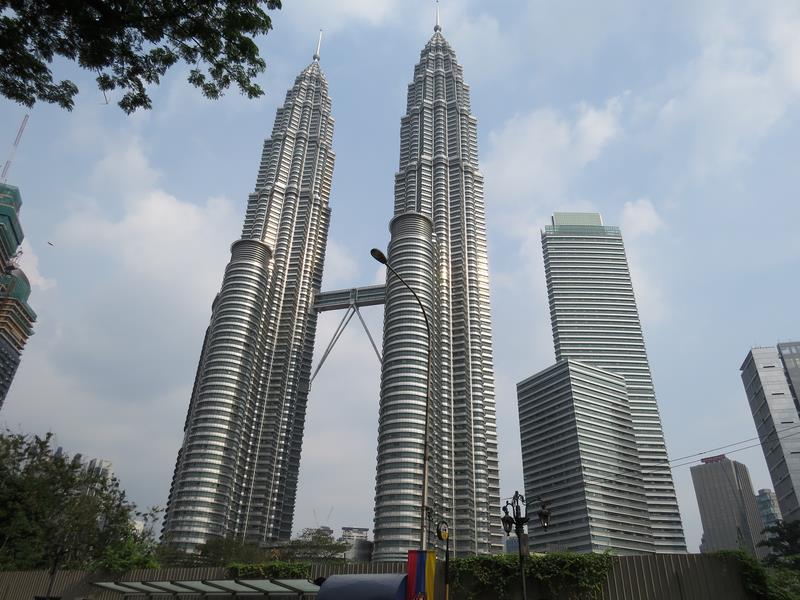 Kuala Lumpur ou KL. Les Petronas Towers sont les tours jumelles les plus hautes du monde ( 451,90 m) et représentent la fulgurante réussite économique de la Malaisie. On les voit de partout.
