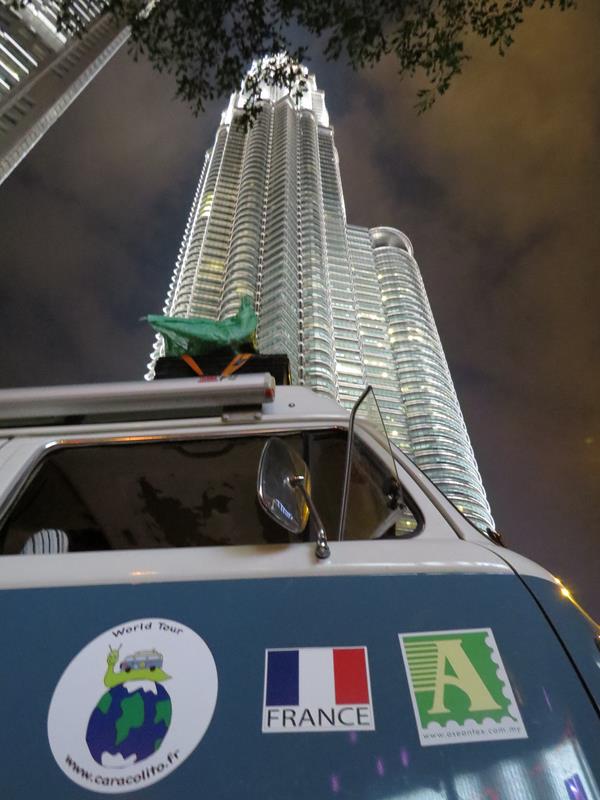 Nous arrivons à Kuala Lumpur dans la chaleur et l'humidité. Un vrai sauna !!!! Nous avions réservé un hôtel avant d'arriver : le KLANG HISTANA HOTEL www.kl-hotels.com en attendant de faire sortir Caracolito de son container. Nous allons dans les bureaux de Mohamed Assir surnommé "1$" qui s'est occupé de toutes les démarches pour faire sortir Caracolito de son container. Nous sympathisons tout de suite avec lui, il est d'un grand professionnalisme et aussi un grand voyageur, il nous donne plein de conseils. Son mail : ahma22@yahoo.com sa société http://www.aseantex.com.my . 1$ passe prendre Fernando à l'hôtel mercredi soir et en deux temps trois mouvements Caracolito est à nouveau sur les routes. Il ne nous reste plus qu'à obtenir l'assurance et le ICP (autorisation necessaire pour pouvoir circuler sur le territoire malais).