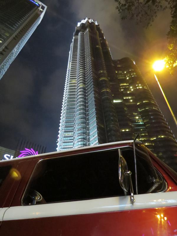 Nous rentrons à KL et Terence nous invite à rester chez lui. Finalement nous ne trouvons pas d'assurance, le véhicule est trop vieux..., et donc pas d' ICP non plus. Tant pis, nous roulerons en toute illégalité, en priant pour ne pas avoir d'accrochage et en espérant ne pas nous faire arrêter. Il est convenu que lundi soir, après un dîner au "New Paris"... avec toute la bande Negawslkov, nous allons aller faire un shooting photo au pied des tours Petronas... Un grand moment !!! c'est comme si en France nous décidions d'aller faire un shooting photo au pied de la Tour Eiffel !!!