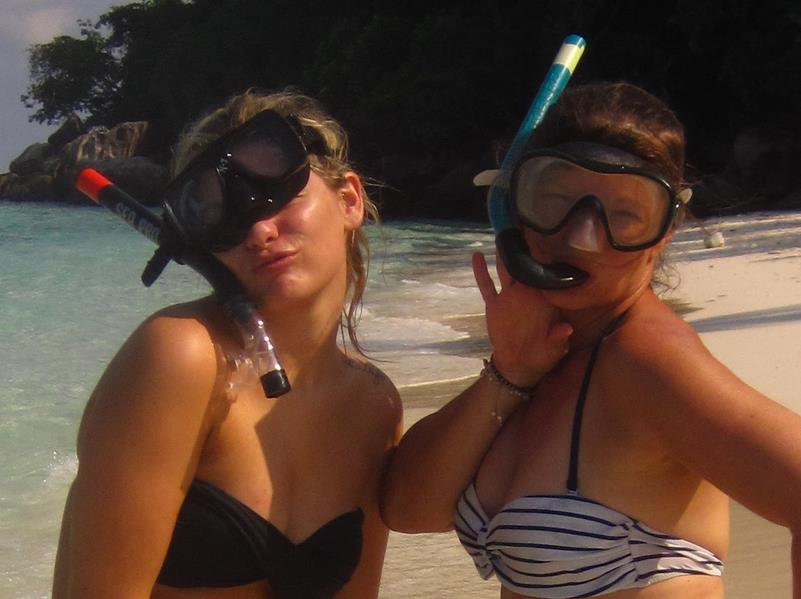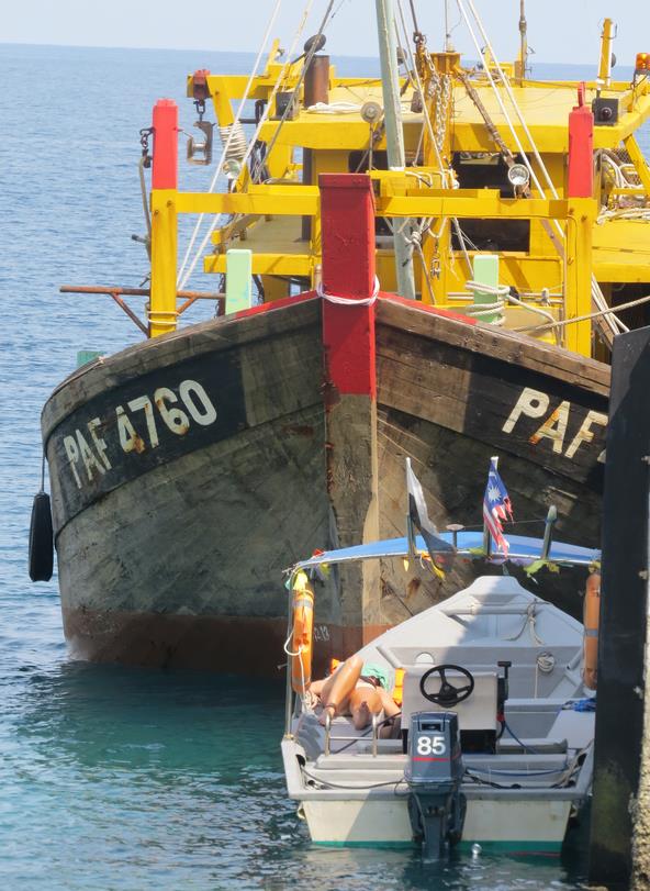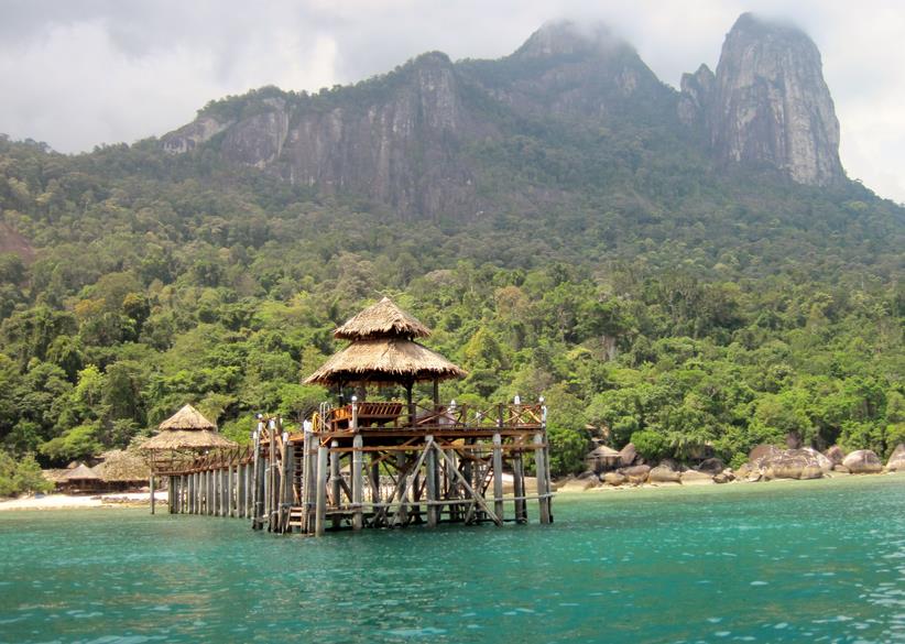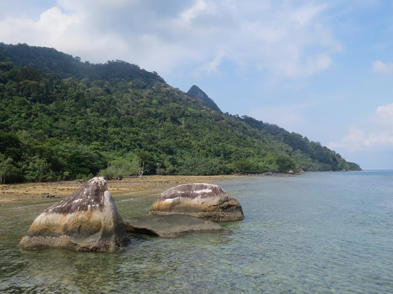 Nous faisons "les bourges qui se la pètent". Nous louons un bateau rien que pour nous. C'est génial. Nous n'avons pas de timing et nous nous arrêtons où nous voulons. Nous faisons le tour de l'île et découvrons la plage de Nipah qui est superbe, un endroit de rêve. Nous regrettons de ne pas y avoir réservé une guesthouse. Et tout au long de la journée snorkeling à volonté, entrecoupé d'une visite dans la jungle intérieure qui nous permet une petite trempette dans une cascade.... L'eau de la mer de Chine est transparente, les coraux éblouissants et il y a une variété de poissons incroyables dont quelques requins à pointe noire (pas vu de tortues sniff, sniff...)