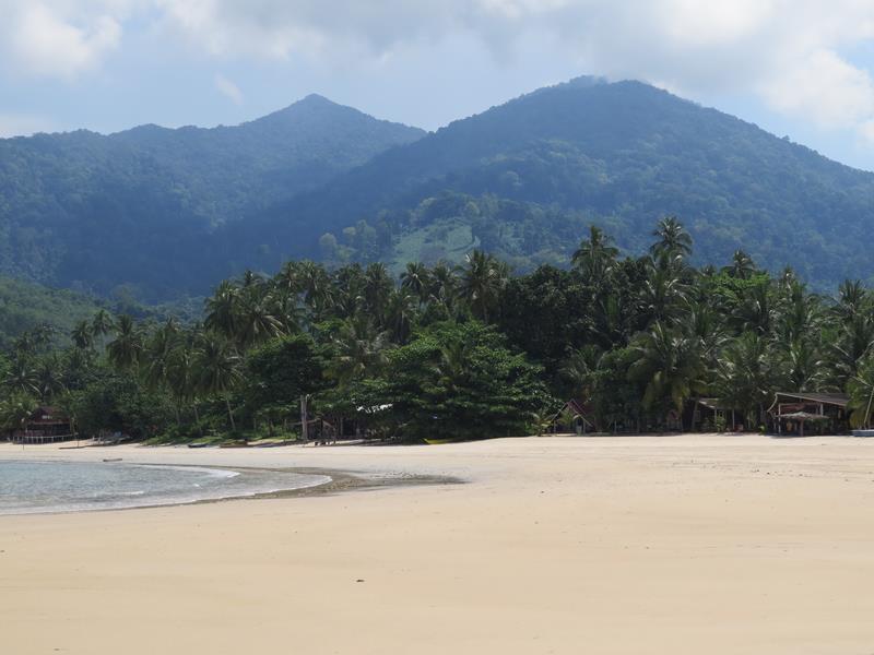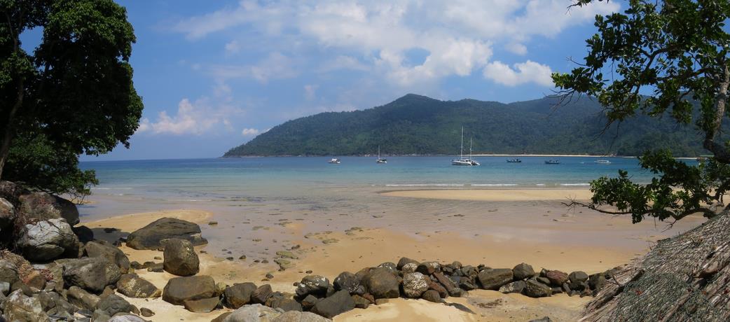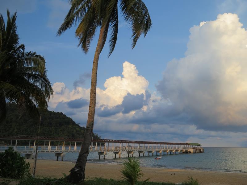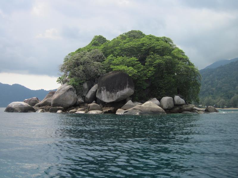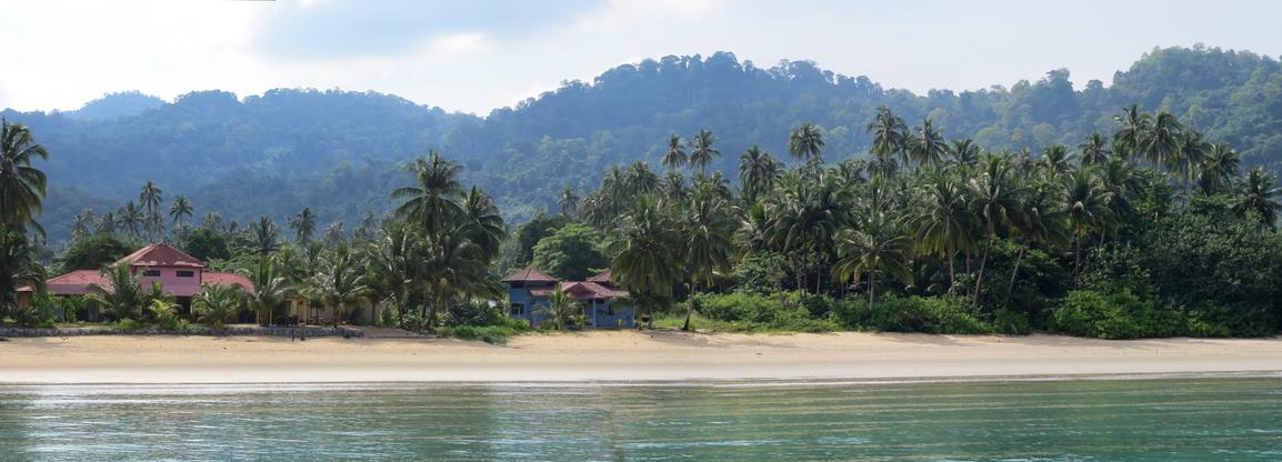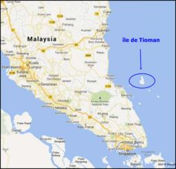 L'île de Tioman est une île d'origine volcanique située en mer de Chine, au large de Mersing. Elle fait 20 km du nord au sud, 11 km d'est en ouest. Nous arrivons à Tekek par le ferry, et le 4X4 de l'hôtel que nous avons réservé nous attend. Nous empruntons la seule route de l'île qui la traverse d'ouest en est. C'est déjà l'aventure, la route serpente et traverse la jungle. Nous arrivons sur la plage de JUARA Beach, c'est comme sur les cartes postales. La mer est bleue turquoise, calme et transparente et le sable blanc de chez blanc.