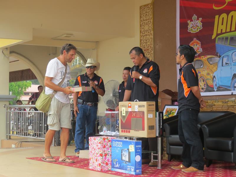 Nous arrivons enfin au meeting. Nous retrouvons les autres de la bande ainsi que Stephen et Cliften de Kuala Lumpur. Nous faisons également de nouvelles connaissances. Nous rentrons dans l'enceinte du meeting. Caracolito est littéralement pris d'assaut et c'est à peine si nous pouvons sortir du véhicule.