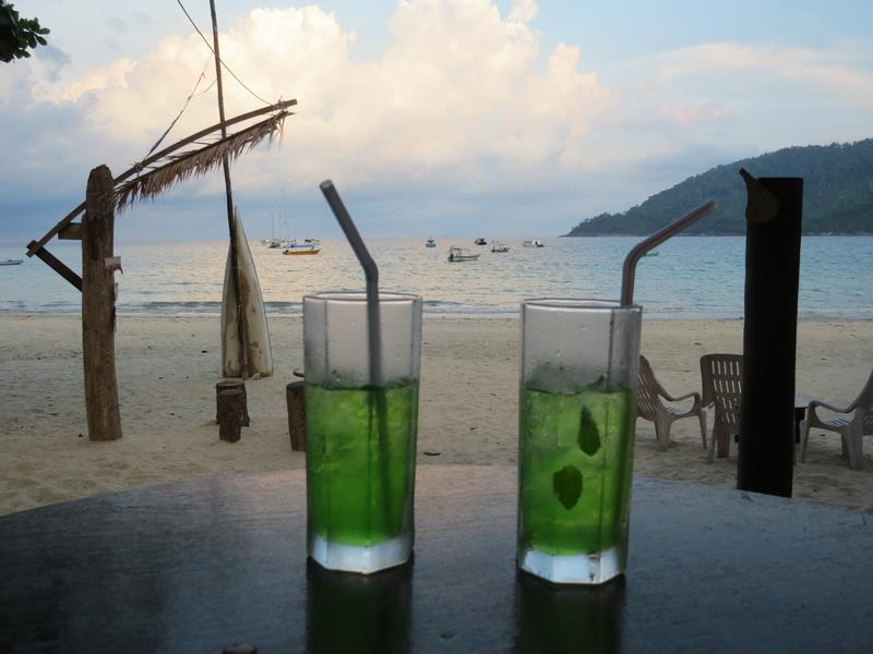Dernière soirée paradisiaque les pieds dans le sable avec mojito "made in Tioman" (on le déconseille...)
