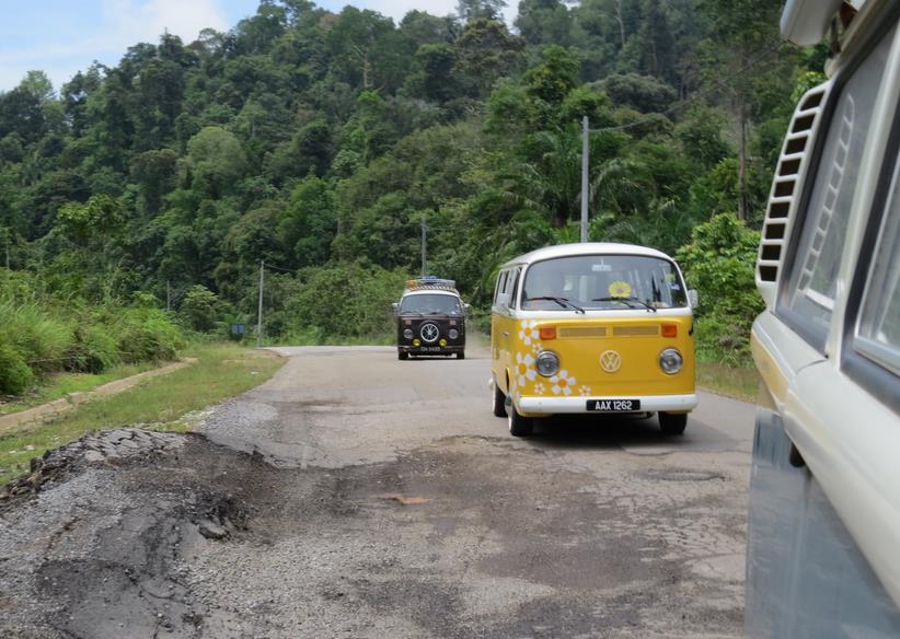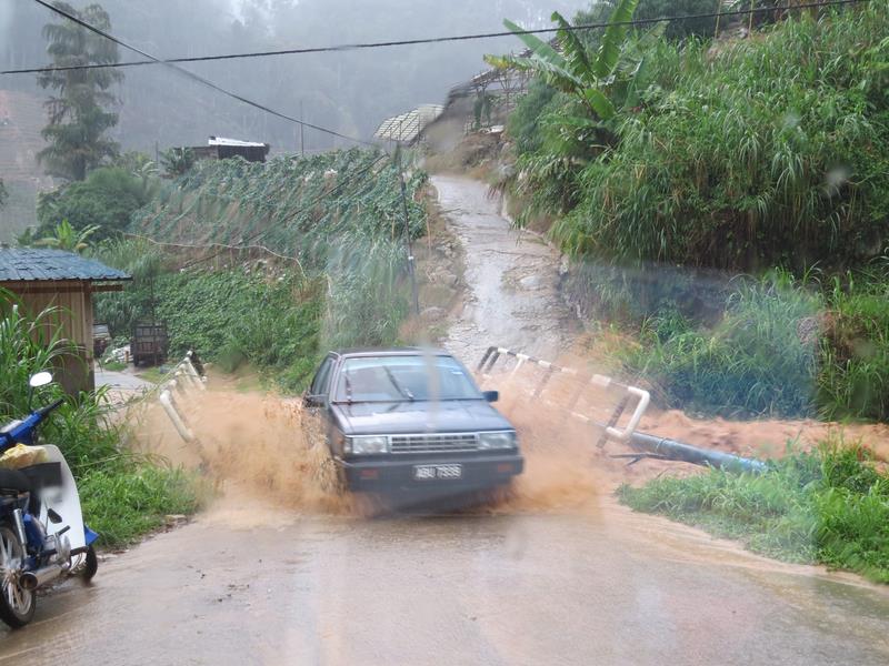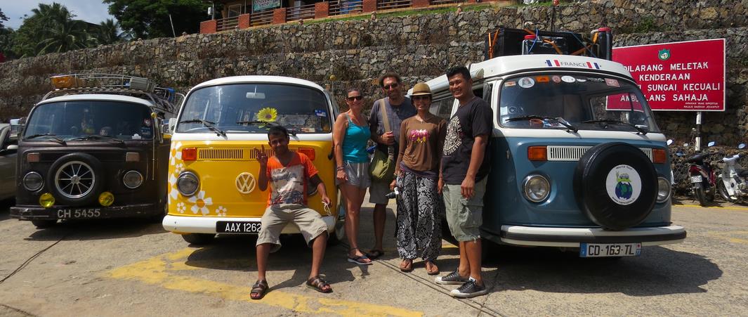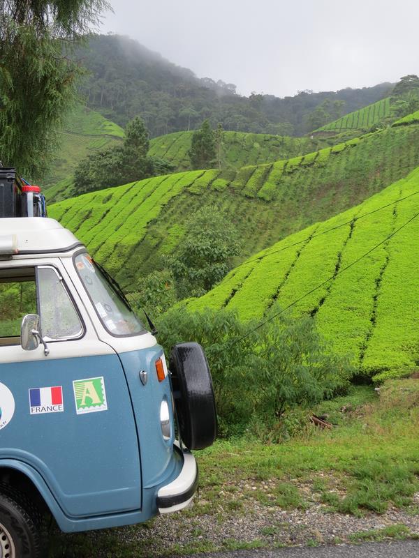 Perchée au coeur de la chaîne des Titiwangsa, à une altitude moyenne de 1500 m, cette station fondée par les anglais attire tous ceux qui rêvent d'une bouffée d'air frais après la chaleur tropicale. Finies les plantations de palmiers à huile à perte de vue. Place aux collines vertes couvertes de plantations de thé formant un immense tapis vert. Par contre nous faisons une partie de la route sous une pluie diluvienne. Nous retrouvons Sivas, un ami VW des "Volksel" qui nous accompagne à notre guesthouse.