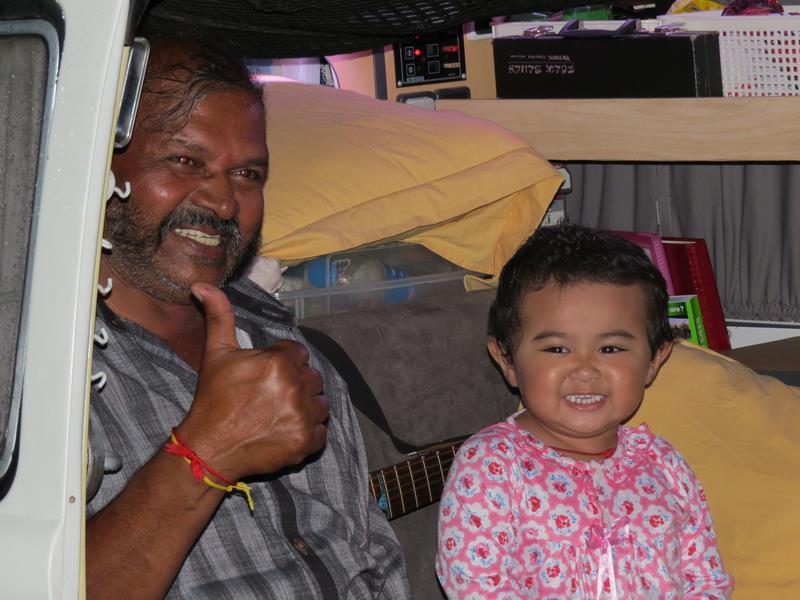 Fernando passe entre les ciseaux d'un copain VW, sous l'oeil attentif de Mimie et Aim. C'est la première fois qu'il coupe les cheveux d'un européen, le résultat est parfait, Sabine n'aurait pas pu faire mieux !!!!!