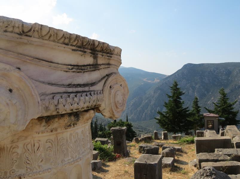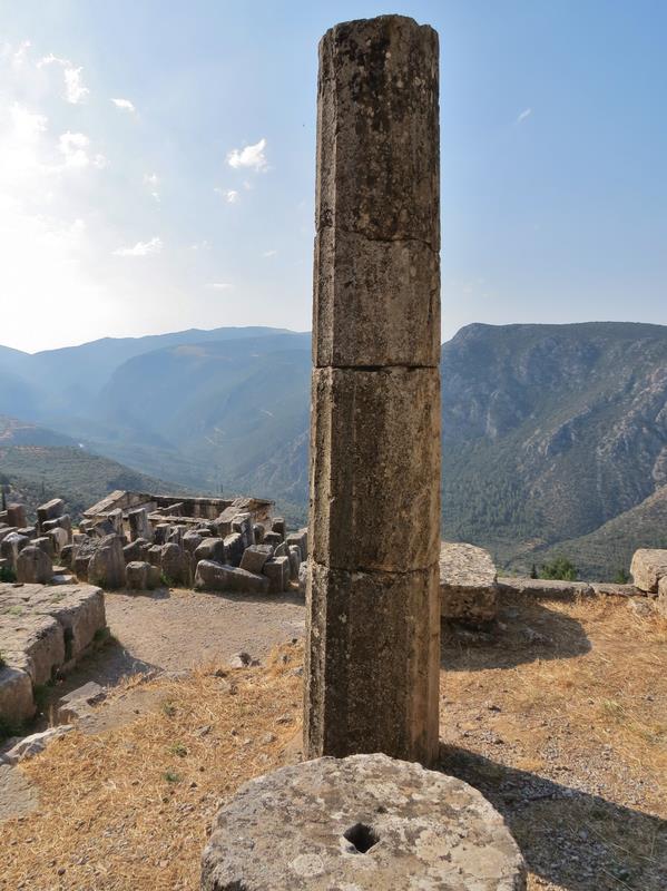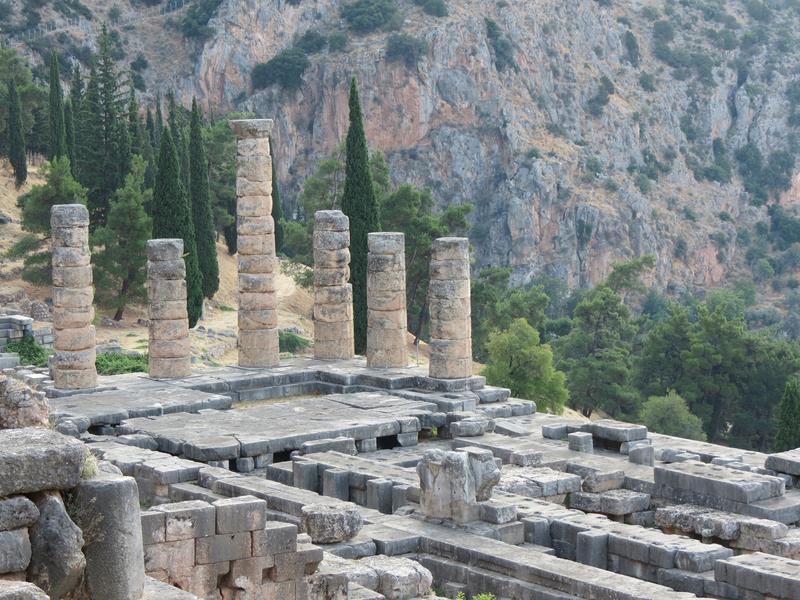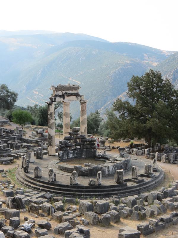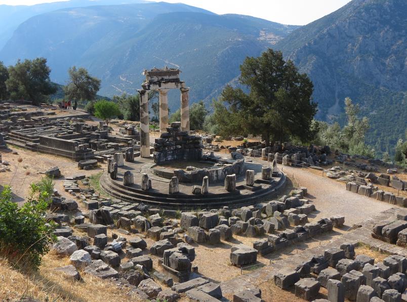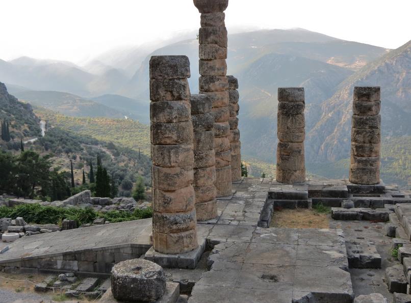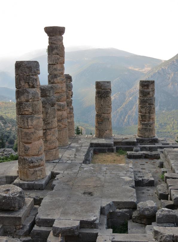 | | DELPHES Selon la légende, lorsque Zeus lâcha deux aigles aux deux extrémités du monde, leurs trajectoires se croisèrent au-dessus de Delphes, marquant ainsi le centre du monde. C'est à cet endroit que fut construit le sanctuaire d'Apollon.
