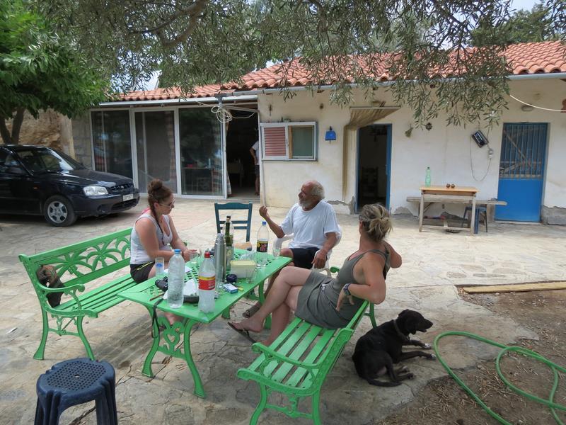Nous reprenons la route et nous nous installons en bivouac dans une petite crique. Nous sommes proches d'une maison et nous demandons à son occupant si cela ne le dérange pas. Nous sommes surpris car il ne parle pas, mais écrit en anglais sur un papier ! En réalité Pablos a été trachéotomisé. Nous allons passer 2 nuits devant chez lui en communiquant par écrit. Il était restaurateur et a vécu 30 ans aux USA. Il nous fait des poulpes grillés qu'il a pêché la nuit précédente et une soupe de poissons. Il propose à Fernando de l'accompagner pour pêcher le poulpe dans la nuit, mais le vent est trop fort, et la sortie en mer ne se fera pas.