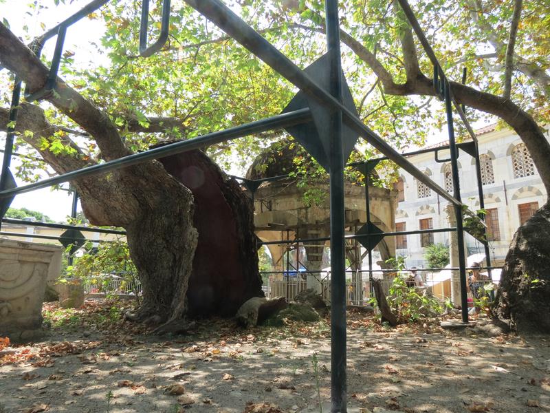 L'arbre d'Hippocrate est un platane sous lequel, selon la légende, Hippocrate enseignait la médecine à ses élèves. C'est un platane d'Orient dont le tronc a une circonférence d'environ 12 m, et il est réputé être le plus grand platane d'Europe...??? c'est pas sûr, mais c'est sûr il est très très vieux. Avec le temps l'arbre est devenu creux et certaines de ses branches sont supportées par des tuteurs métalliques