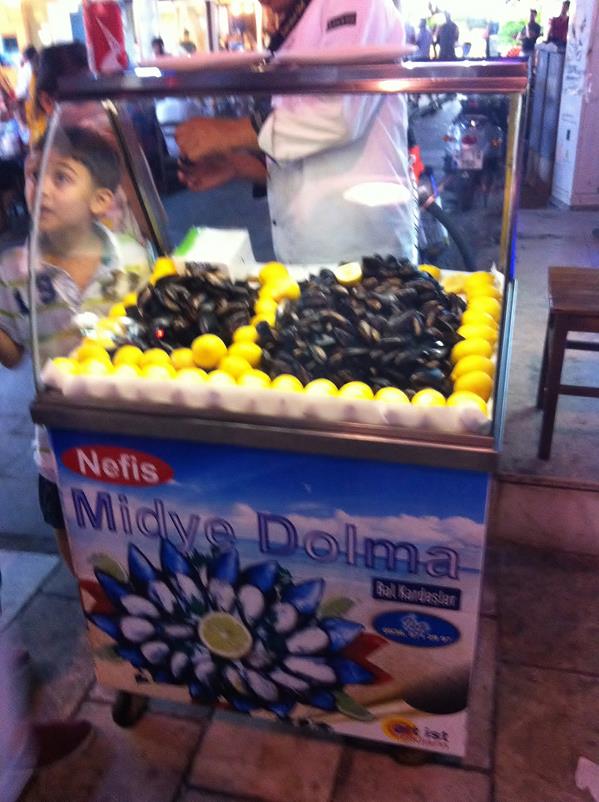 Dans les rues de Bodrum ... Night-clubs en pleine rue, restaurants à la pelle, étales de poissons, vente de moules crues...