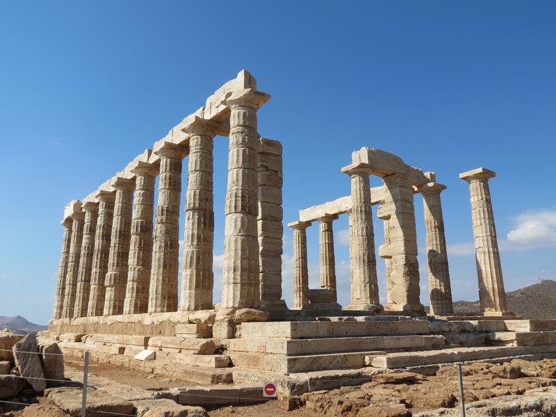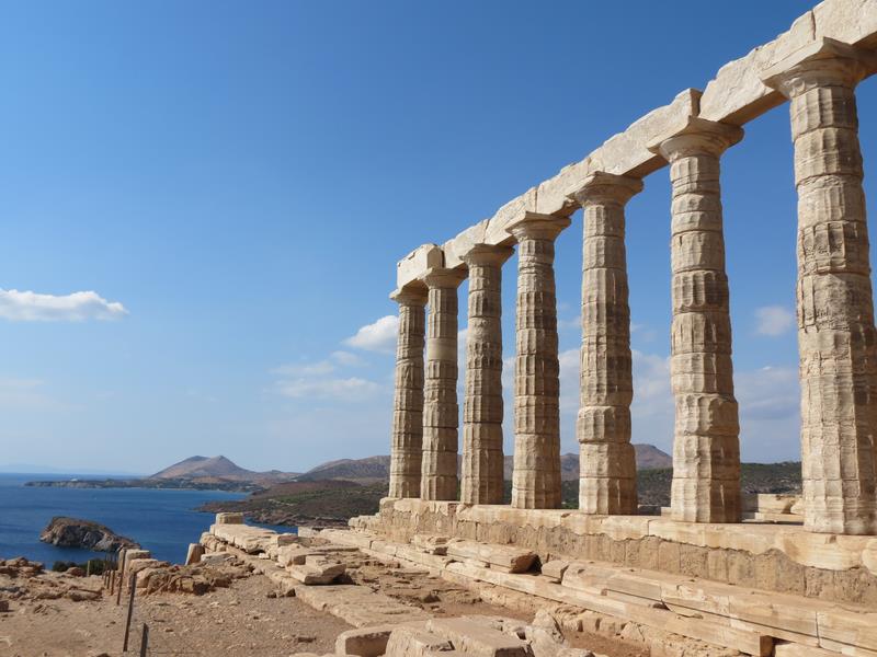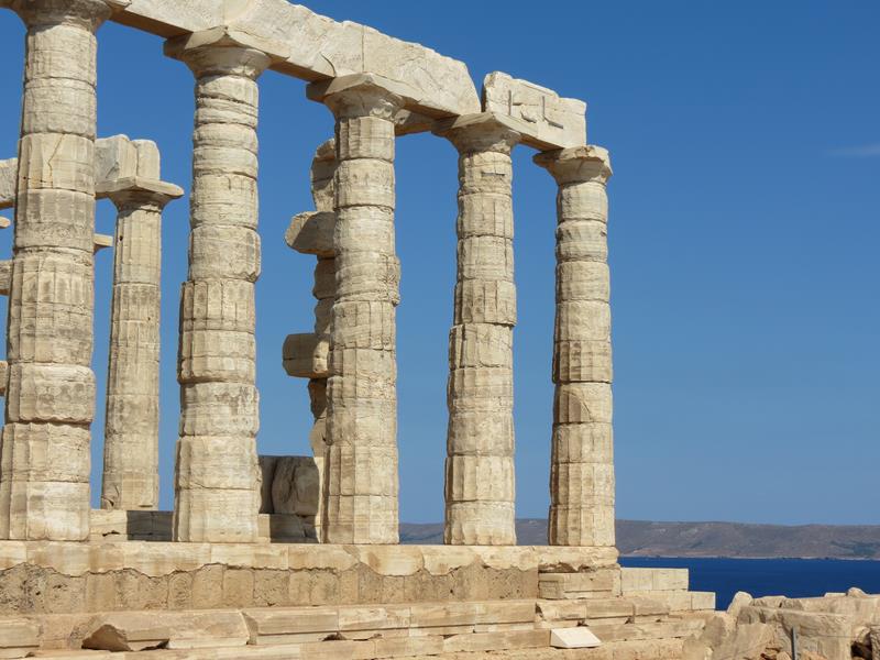 Retour à Athènes Cap Sounion et le temple de Poséïdon Construit en retrait sur la falaise du cap Sounion, le temple de Poséidon est superbement situé. Depuis des siècles, ses colonnes de marbre blanc servent de point de repère aux marins.