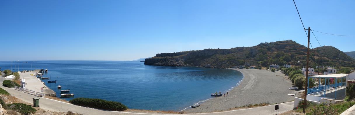 Nous nous arrêtons à Rovies au beach bar, bord de plage idéal pour un bivouac. Nous discutons avec la propriétaire qui parle le français, elle loue des chambres et des appartements à des prix tout à fait correct www.rovies-west.gr .Nous lui avons promis de parler d'elle sur notre site.