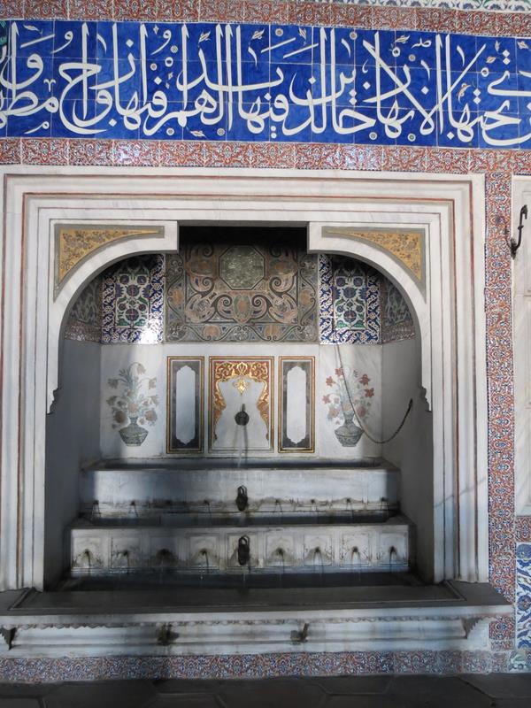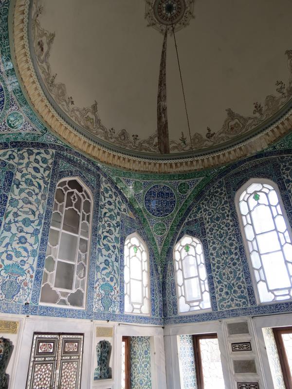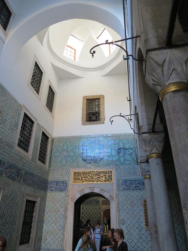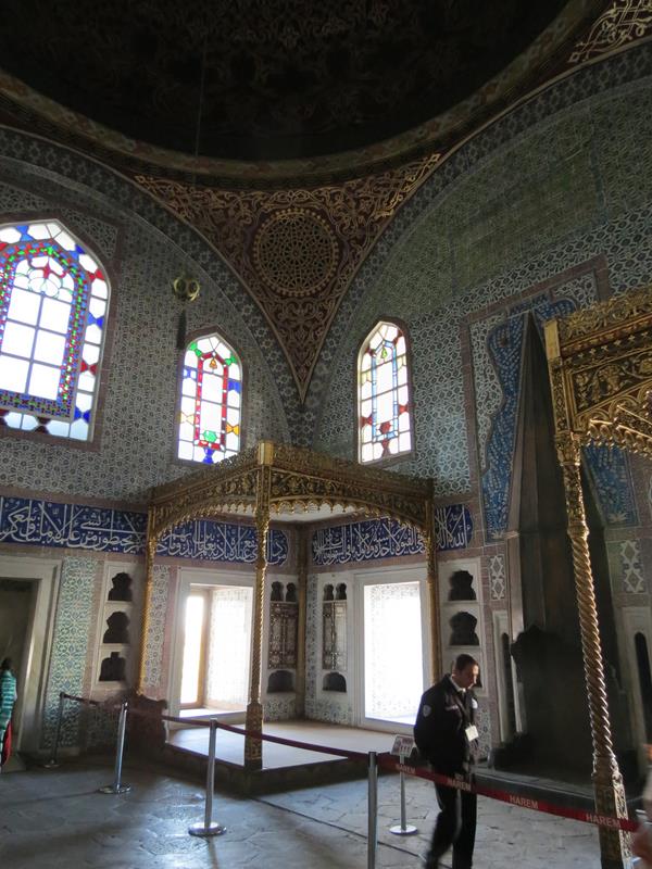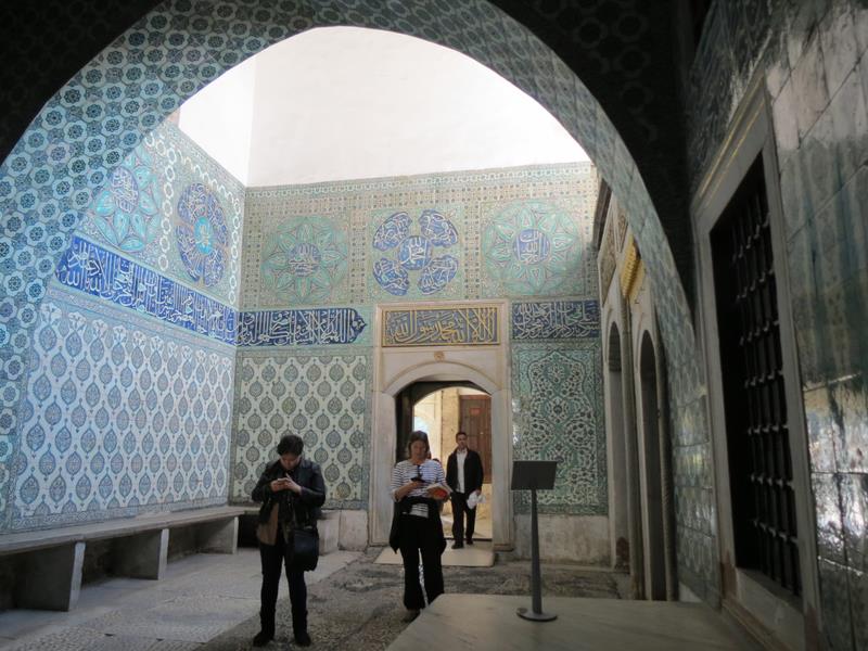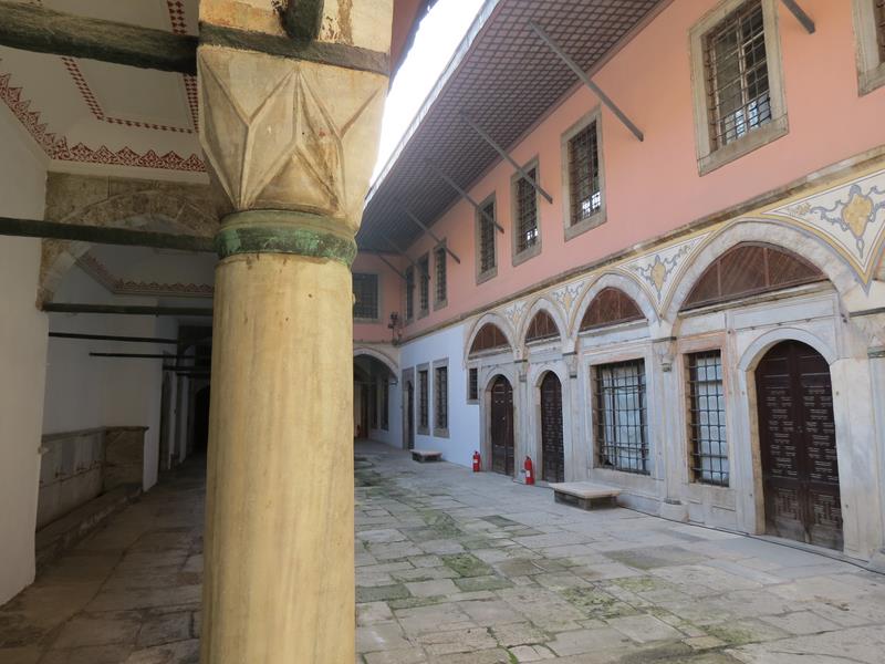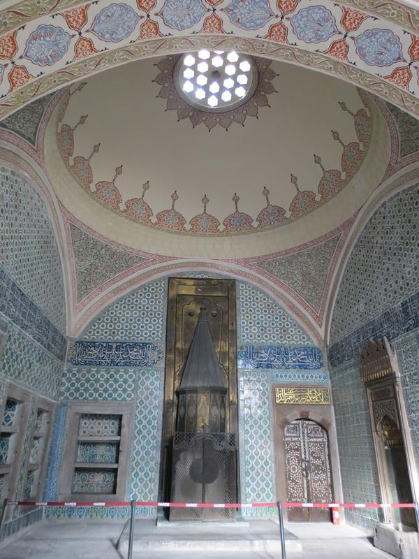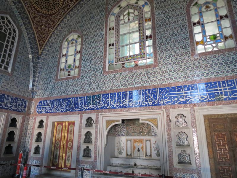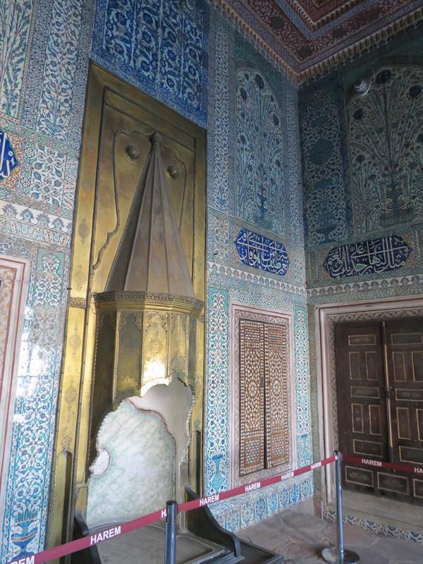 Visite du Harem du Palais Le harem, où les seuls hommes admis étaient le sultan, ses enfants, les musiciens, les ouvriers chargés des réparations, et les eunuques naturellement..., comptait à lui seul 300 pièces, 46 toilettes, 8 bains, 4 cuisines, 2 mosquées, 6 celliers, 1 piscine et 1 infirmerie. Tout cela pour le seul harem du palais... Il faut savoir que le nombre de femmes vivant dans le harem était aux alentours de 1000... : la reine mère, ses favorites, les femmes que le sultan avait daigné honorer, celles qui lui avaient donné un descendant, les parentes, les domestiques, les nourrices, les couturières, les danseuses, les musiciennes et les esclaves. Ceci explique cela...
