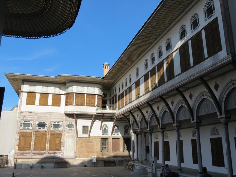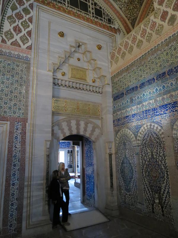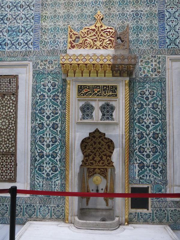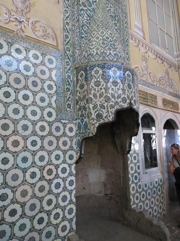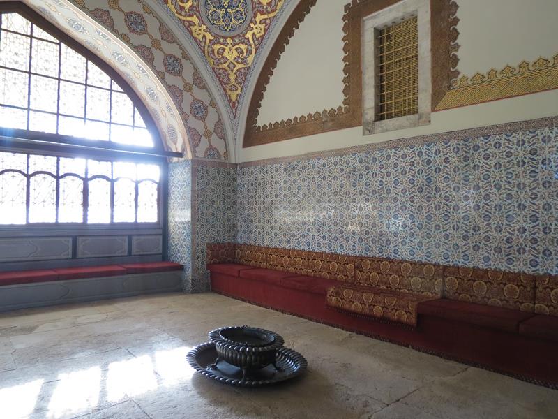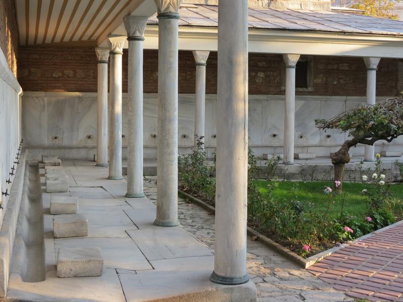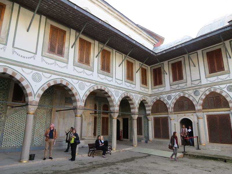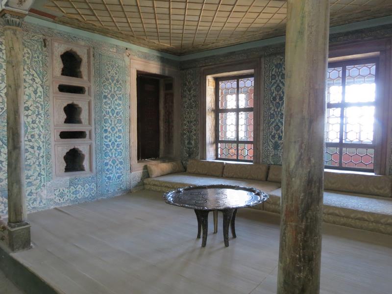 Visite du Harem du Palais Le harem, où les seuls hommes admis étaient le sultan, ses enfants, les musiciens, les ouvriers chargés des réparations, et les eunuques naturellement..., comptait à lui seul 300 pièces, 46 toilettes, 8 bains, 4 cuisines, 2 mosquées, 6 celliers, 1 piscine et 1 infirmerie. Tout cela pour le seul harem du palais... Il faut savoir que le nombre de femmes vivant dans le harem était aux alentours de 1000... : la reine mère, ses favorites, les femmes que le sultan avait daigné honorer, celles qui lui avaient donné un descendant, les parentes, les domestiques, les nourrices, les couturières, les danseuses, les musiciennes et les esclaves. Ceci explique cela...