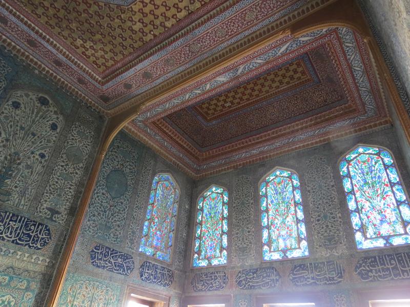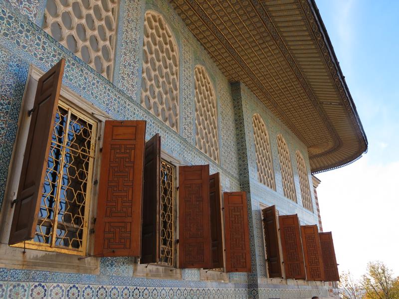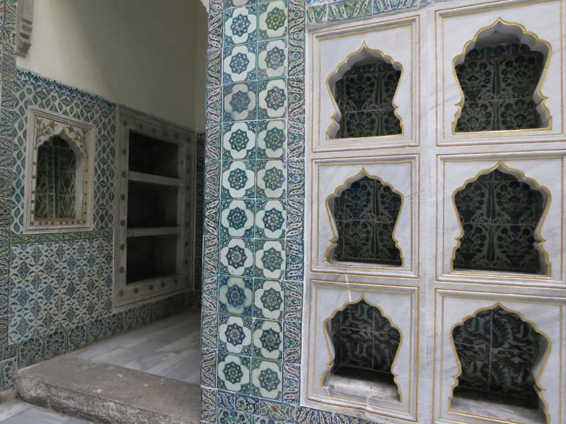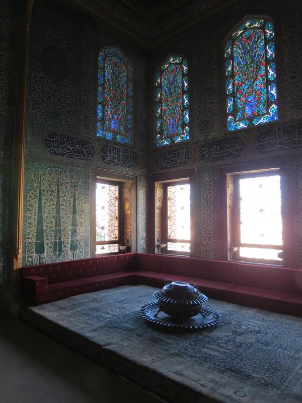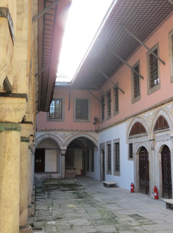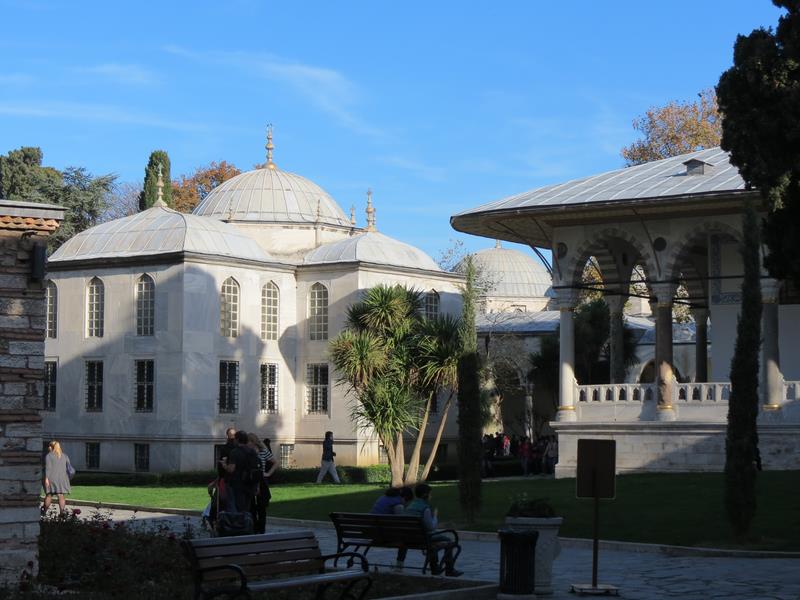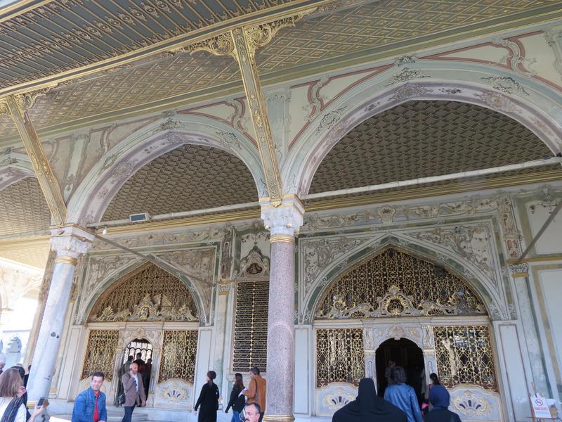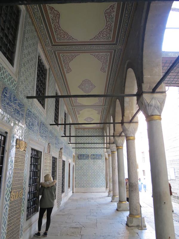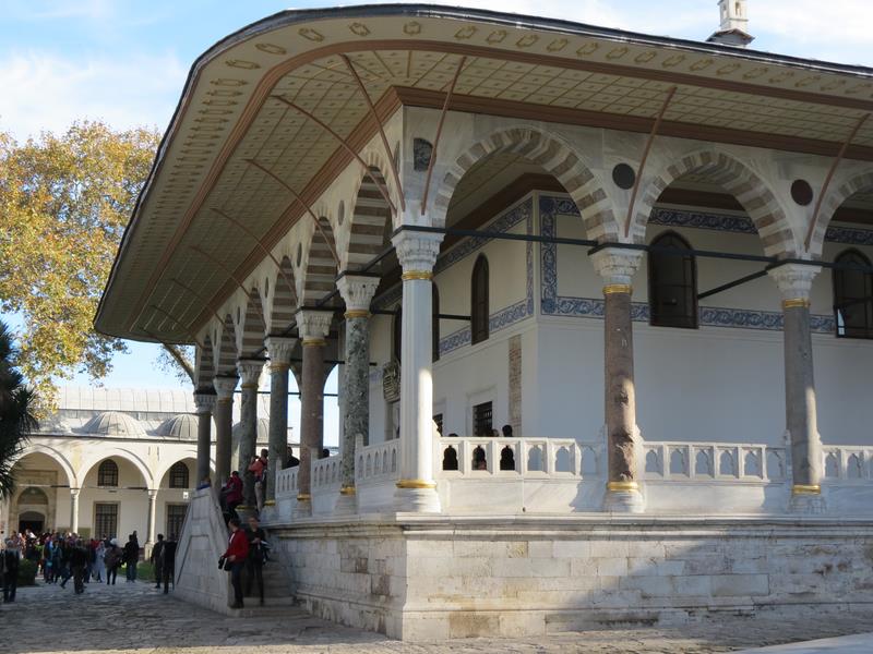 Visite du Harem du Palais Le harem, où les seuls hommes admis étaient le sultan, ses enfants, les musiciens, les ouvriers chargés des réparations, et les eunuques naturellement..., comptait à lui seul 300 pièces, 46 toilettes, 8 bains, 4 cuisines, 2 mosquées, 6 celliers, 1 piscine et 1 infirmerie. Tout cela pour le seul harem du palais... Il faut savoir que le nombre de femmes vivant dans le harem était aux alentours de 1000... : la reine mère, ses favorites, les femmes que le sultan avait daigné honorer, celles qui lui avaient donné un descendant, les parentes, les domestiques, les nourrices, les couturières, les danseuses, les musiciennes et les esclaves. Ceci explique cela...