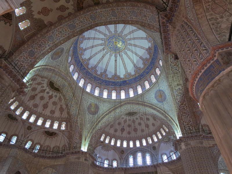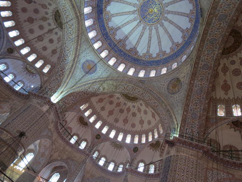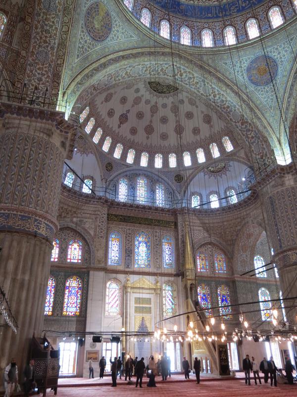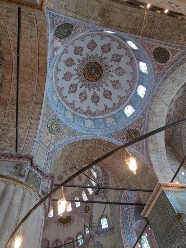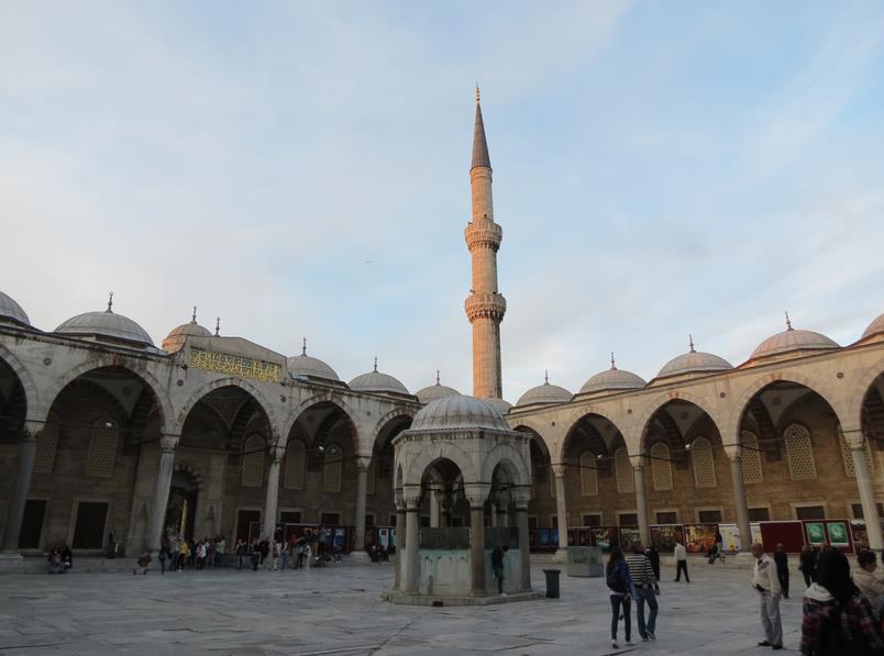 La Mosquée Bleue Elle doit son nom aux 21000 carreaux de faïence à fond bleu qui tapissent ses murs. La mosquée la plus célèbre d'Istanbul datant de 1616 et dont la construction fut réalisée en un temps record (6 ans), soit 10 ans avant St Pierre de Rome dont la construction avait débuté près de 200 ans plus tôt (1452) .... La mosquée Bleue est également célèbre pour ses 6 minarets dont seules se parent les mosquées les plus sacrées. On raconte que le sultan qui commanda sa construction tenait absolument à ce nombre. Afin de satisfaire les autorités religieuses outrées d'un tel désir, le sultan offrit alors un 7ème minaret à la mosquée de la Mecque, qui était la seule de tout l'empire islamique à en posséder déjà 6